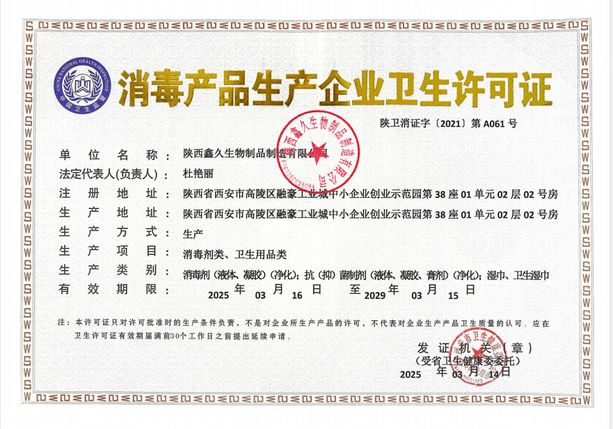 Номер лицензии на производство Shaanwei xiaozhengzi [2021] no. a061