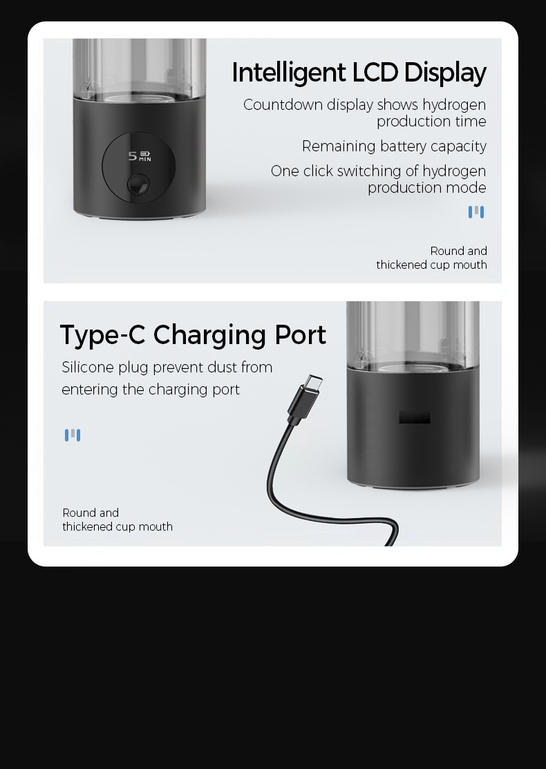 High concentration portable hydrogen water cup Hydrogen production cup, hydrogen water bottle, weak alkaline water cup, hydrogen absorption cup, three-in-one