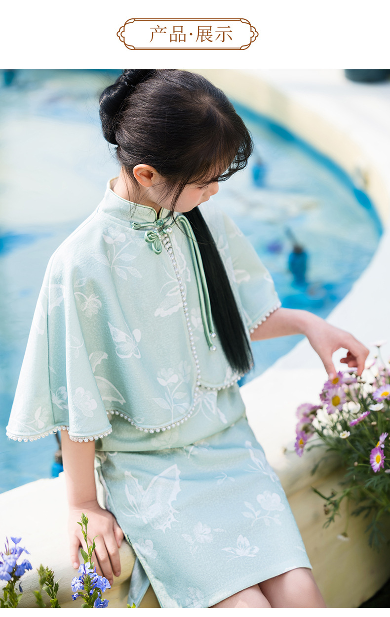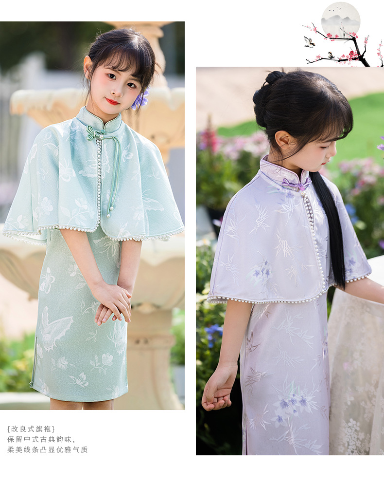 Чонгсам для девочек весна новый комплект из двух частей с шалью в китайском стиле для девочек