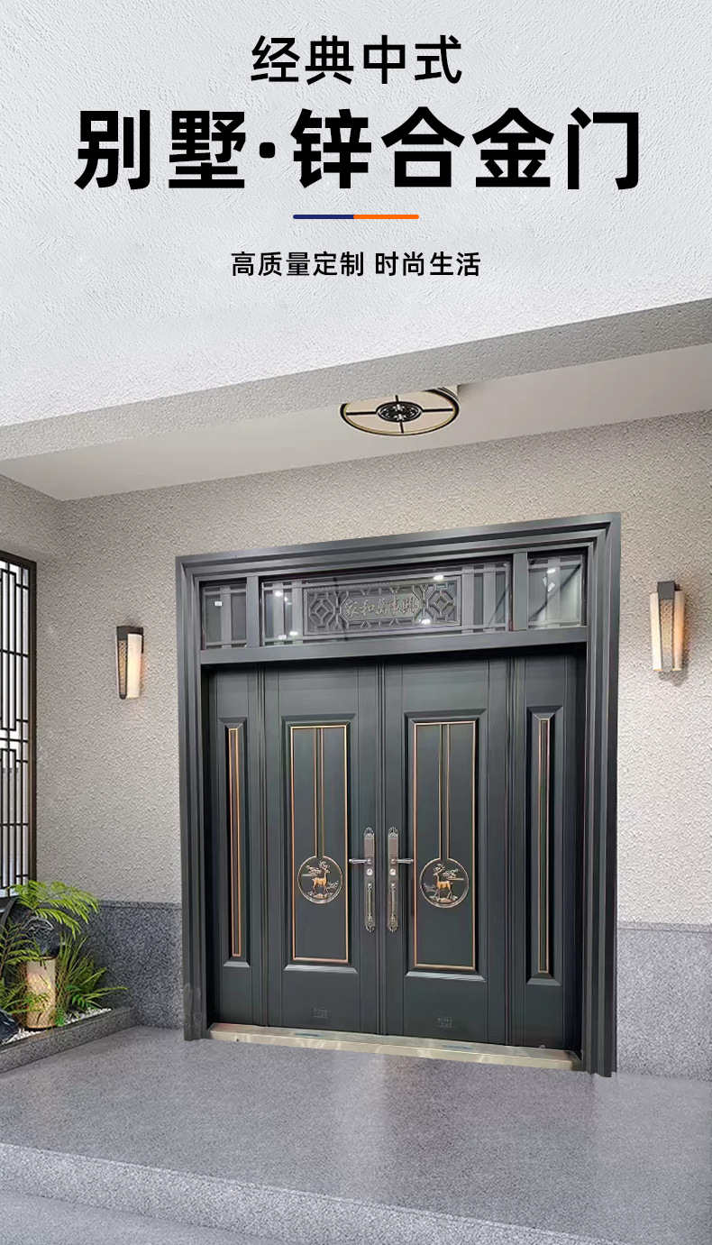 Дверь из цинкового сплава для виллы, индивидуальная гостиничная садовая классическая дверь, сельская самостроящаяся антивандальная двустворчатая дверь