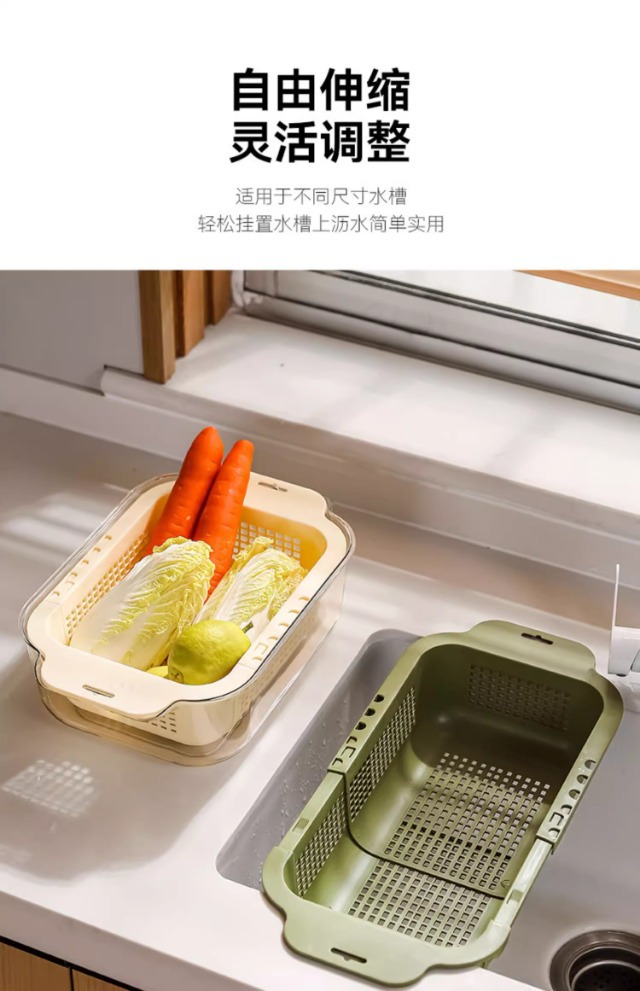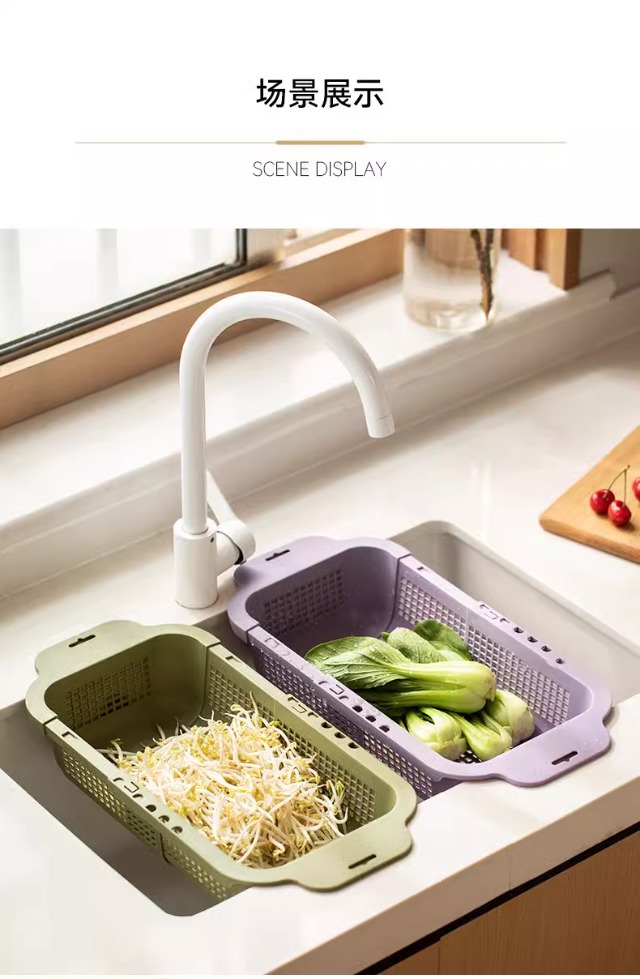 Расширяемая корзина для слива, таз для мытья овощей, пластиковая корзина для хранения фруктов и овощей, стойка для раковины