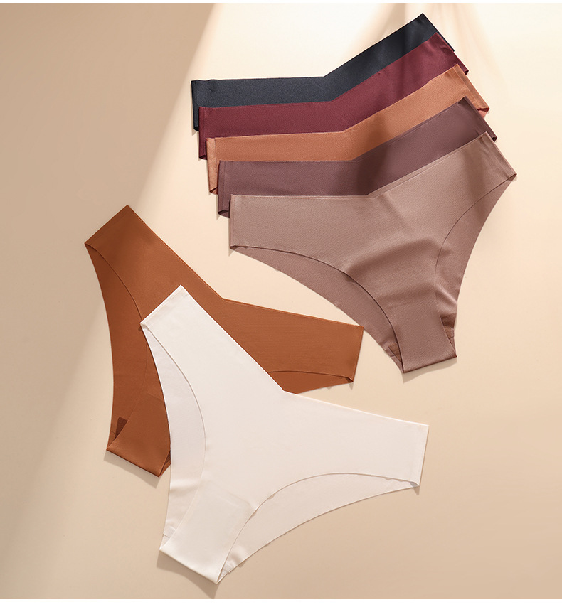 Бесшовное белье из ледяного шелка больших размеров для женщин, V-образная талия, однослойные трусики