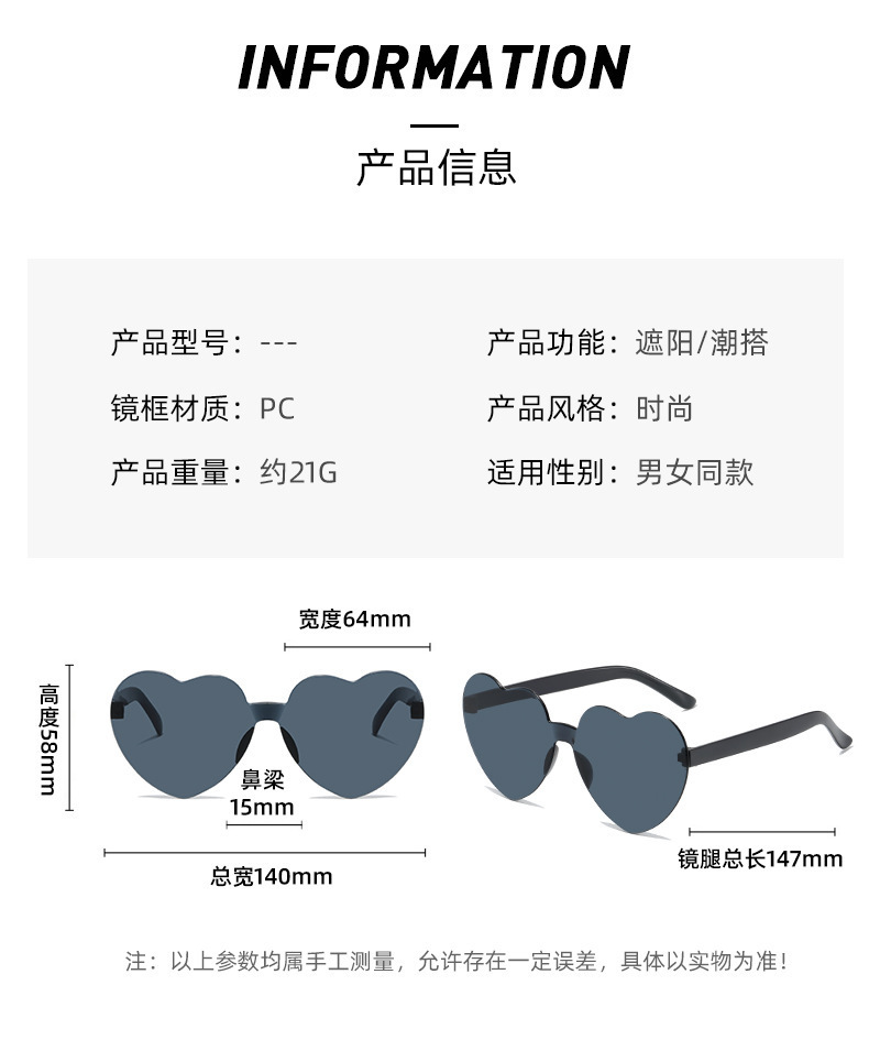 Солнцезащитные очки в форме сердца, безободковые, яркие цвета