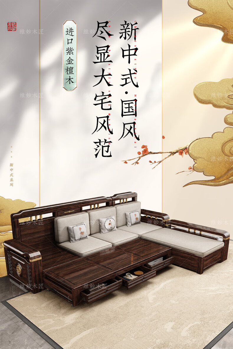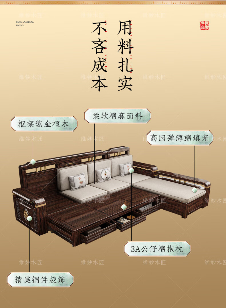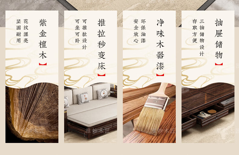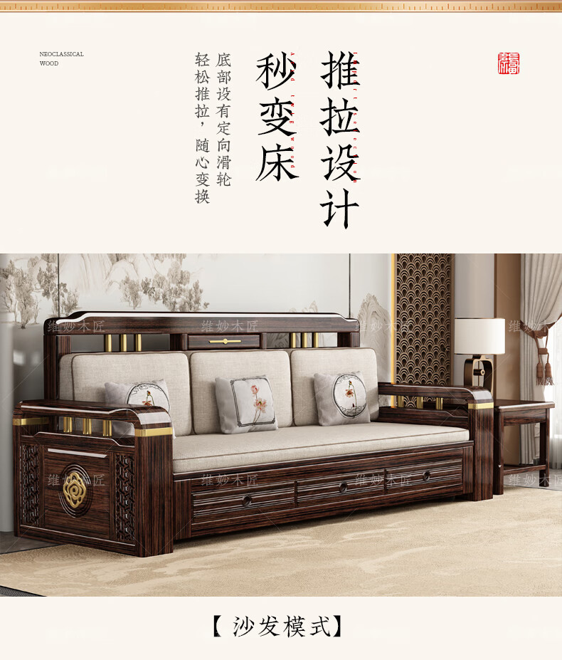 Новая Китайская Многофункциональная Трехместная Телескопическая Кровать Новый Пурпурно-Золотой Сандал Деревянный Складной Диван Для Маленькой Квартиры