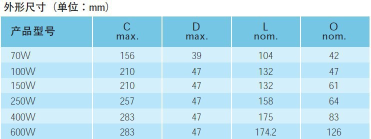 ● 高流明维持率,保证整个使用过程中的照明效果