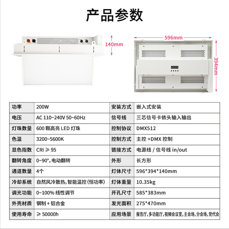 灯体尺寸: 596*394*140mm