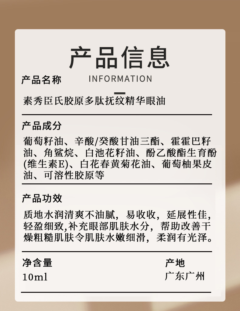 Номер товара D27 su xiuchen's collagen peptide wrinkle smoothing essence eye oil # 1 bottle
