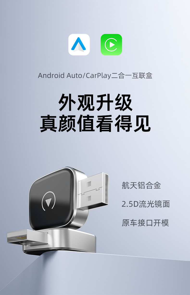 Адаптер Carplay с проводным подключением, алюминиевый корпус, 2.5D зеркало, Android Auto