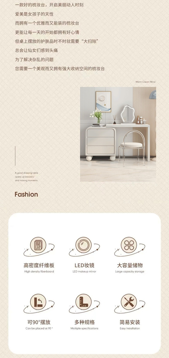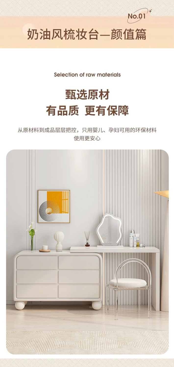 Простая кремовая туалетная столик из массива дерева, интегрированный шкаф для хранения, для маленькой квартиры, французский туалетный столик