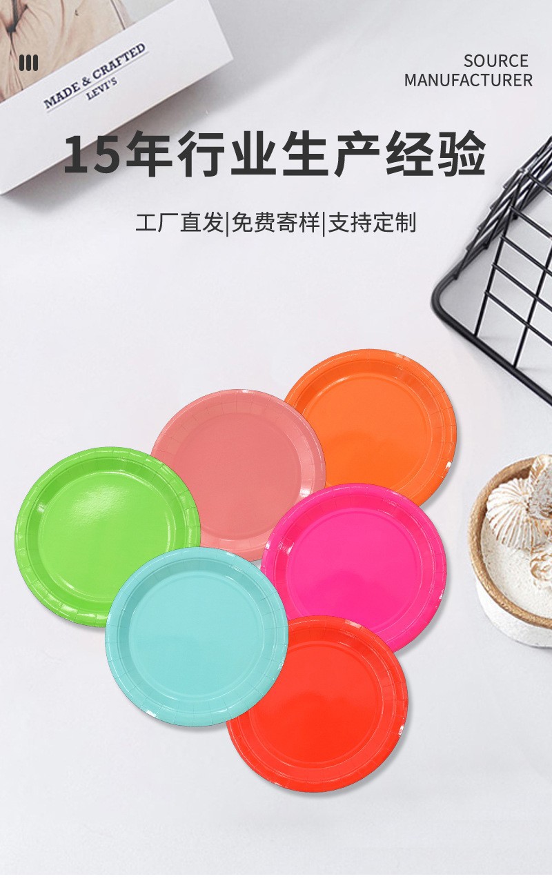 Прямые продажи одноразовых бумажных тарелок однотонного цвета для вечеринок