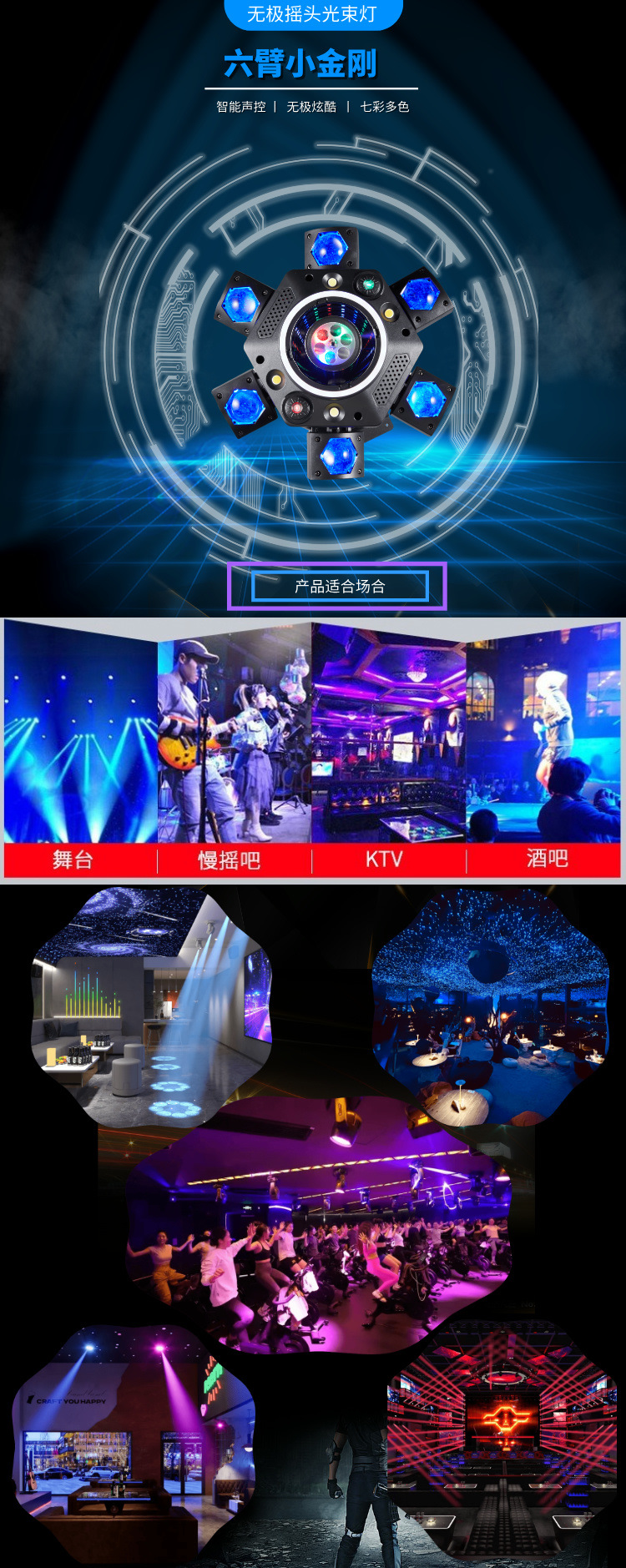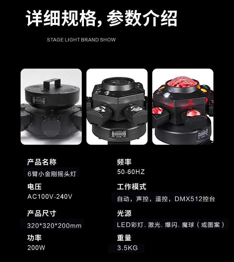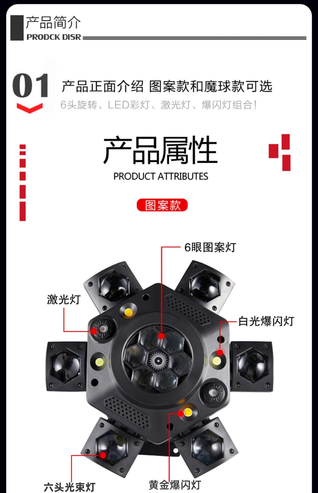 Атмосферный свет, шестиармный, вращающийся, лазерный свет, диско, голосовое управление, KTV