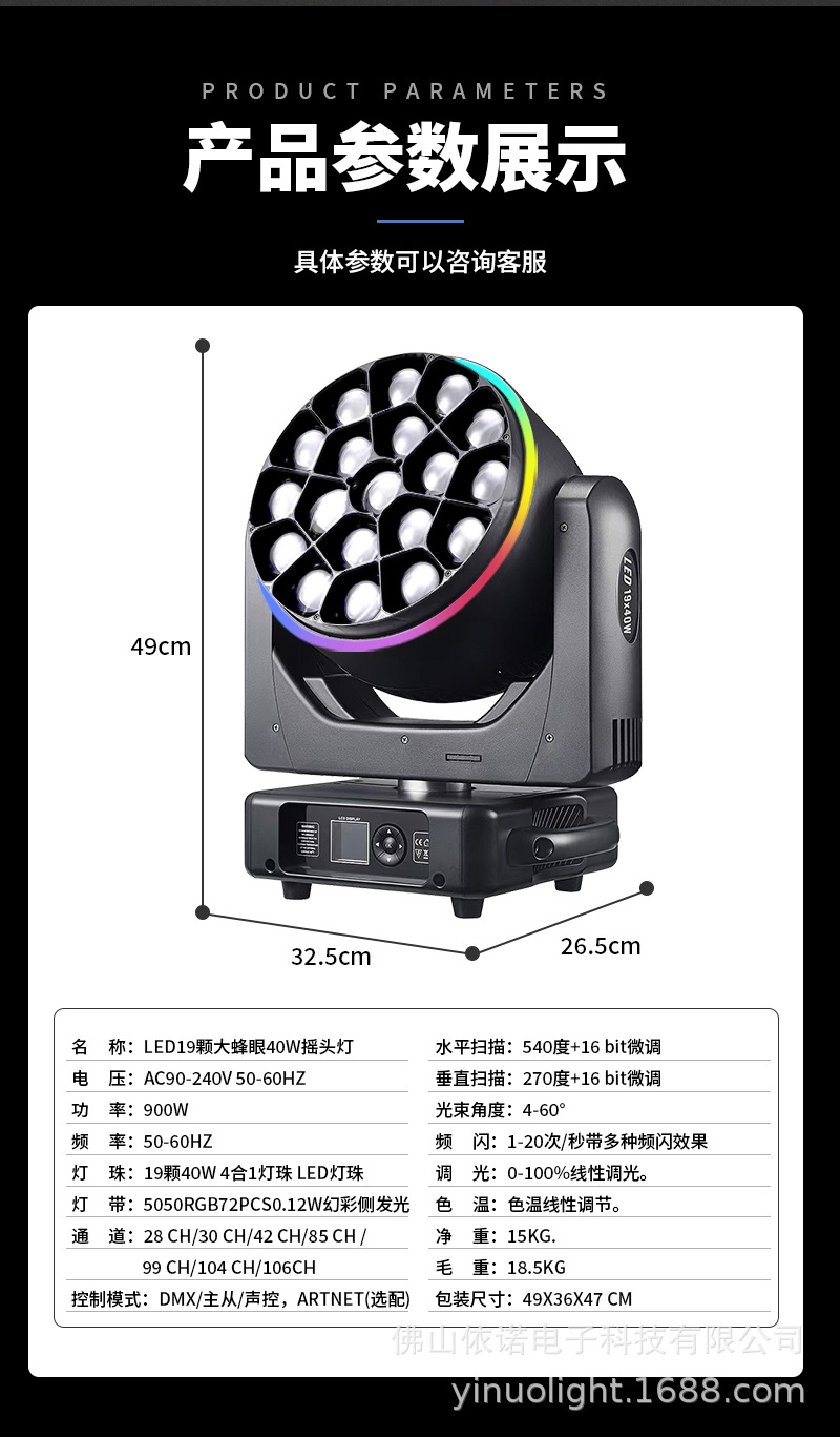 LED 19 40W большой, движущийся светильник, 15W вспомогательный, свадебный, банкетный, голосовое управление