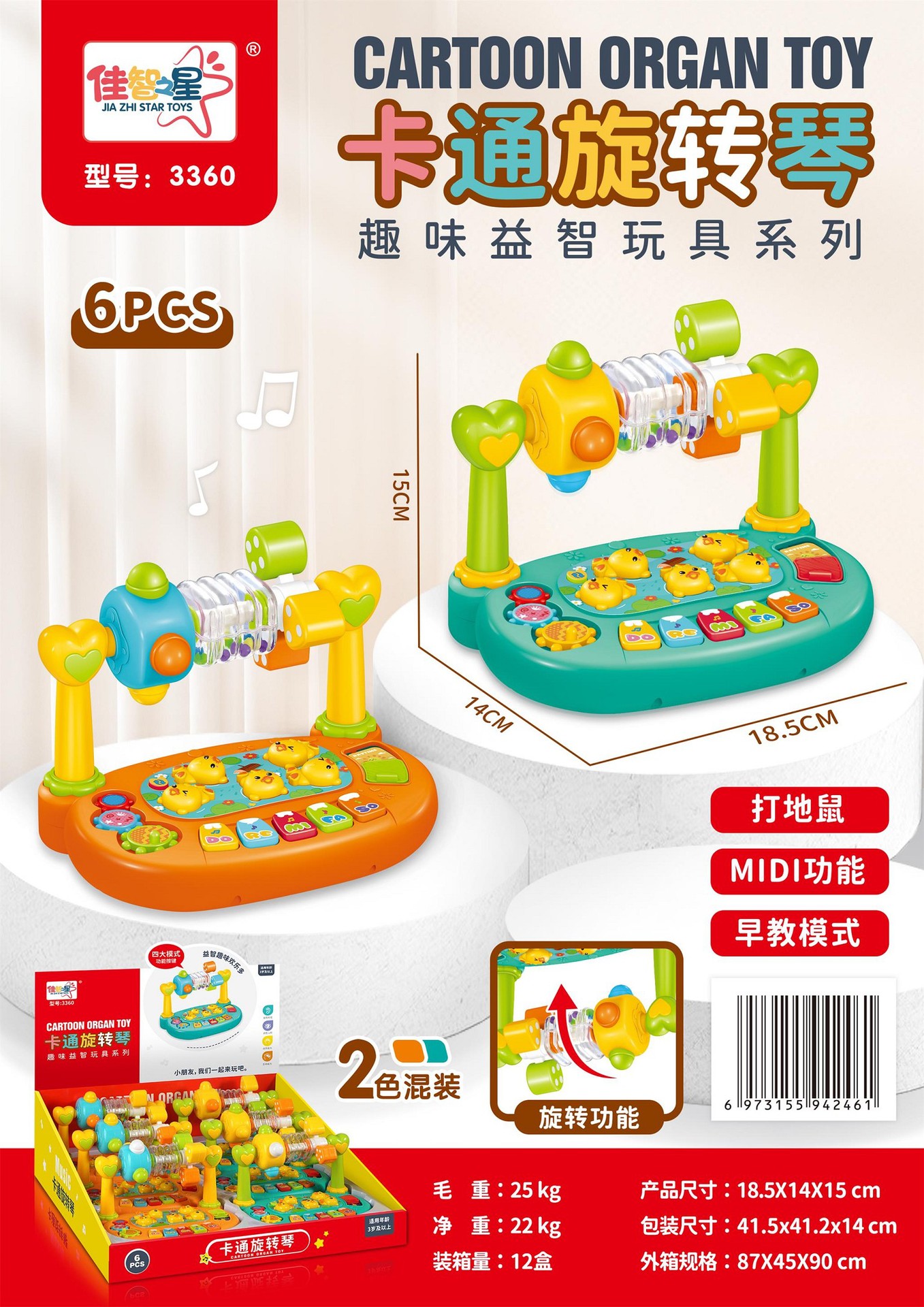 Мультяшная вращающаяся пианино Игровая консоль Удар по кроту Образовательные игрушки для детей