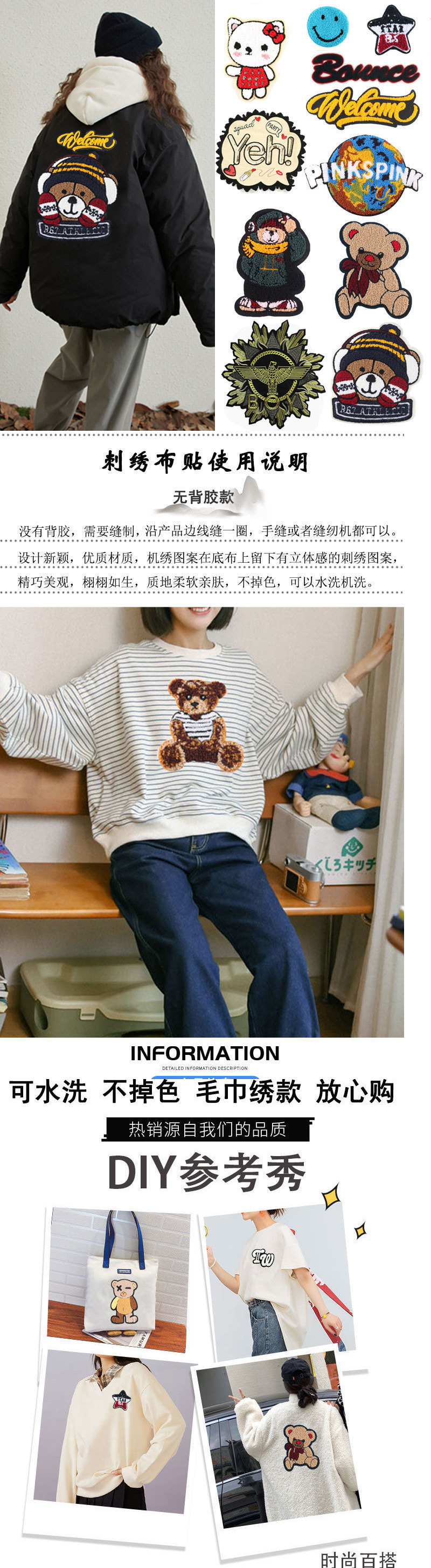 Вышивка мультяшного узора, большой полотенце с вышивкой медведя, заплатка для ремонта больших взрослых пуховиков