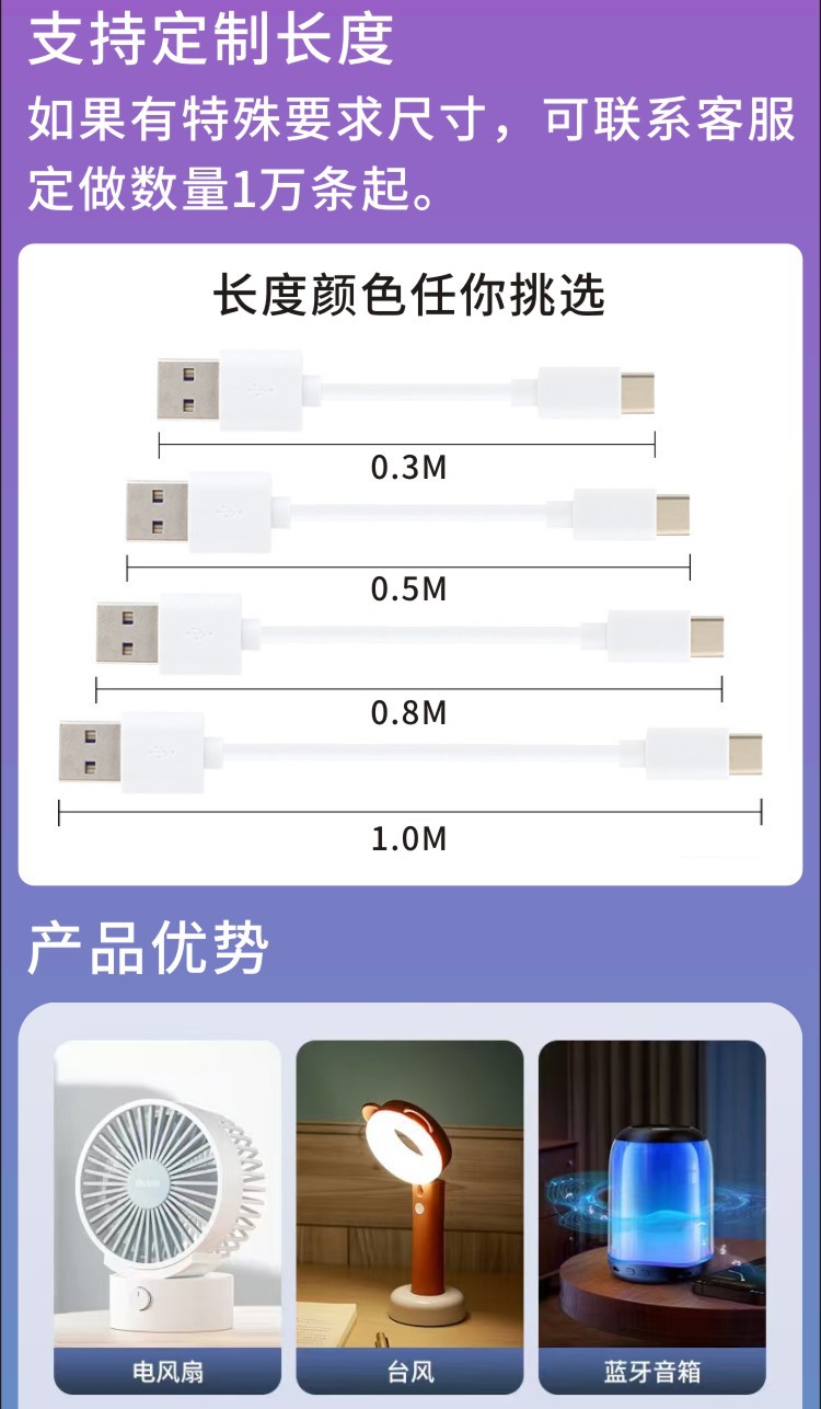 Короткий кабель Type-C, зарядный кабель, сборный кабель 0.3/0.5 м, двухжильный, для малой бытовой техники, USB сборный кабель