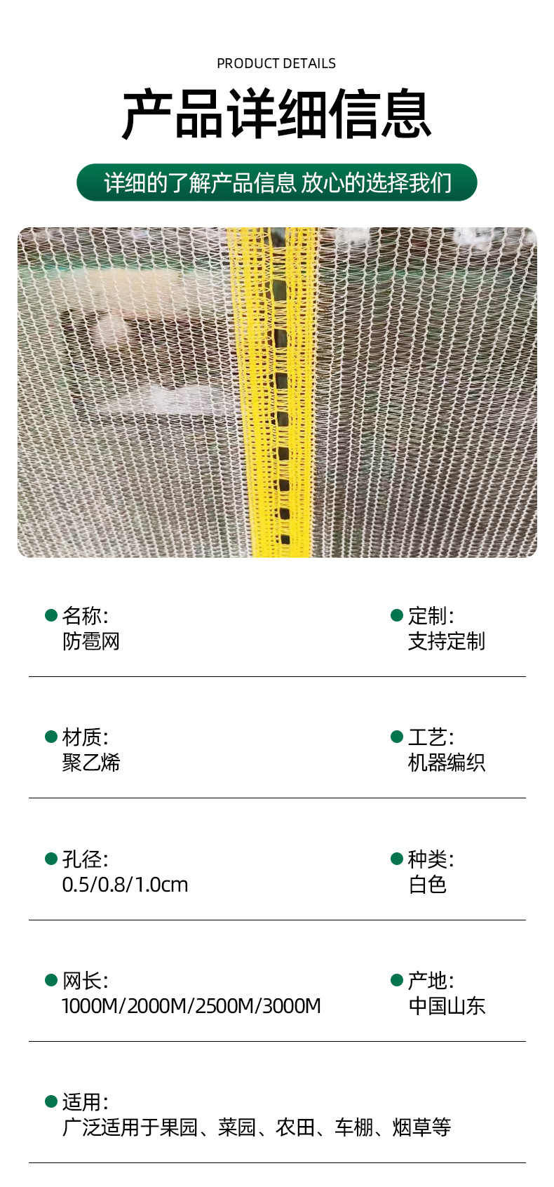 Номер товара Hail protection net