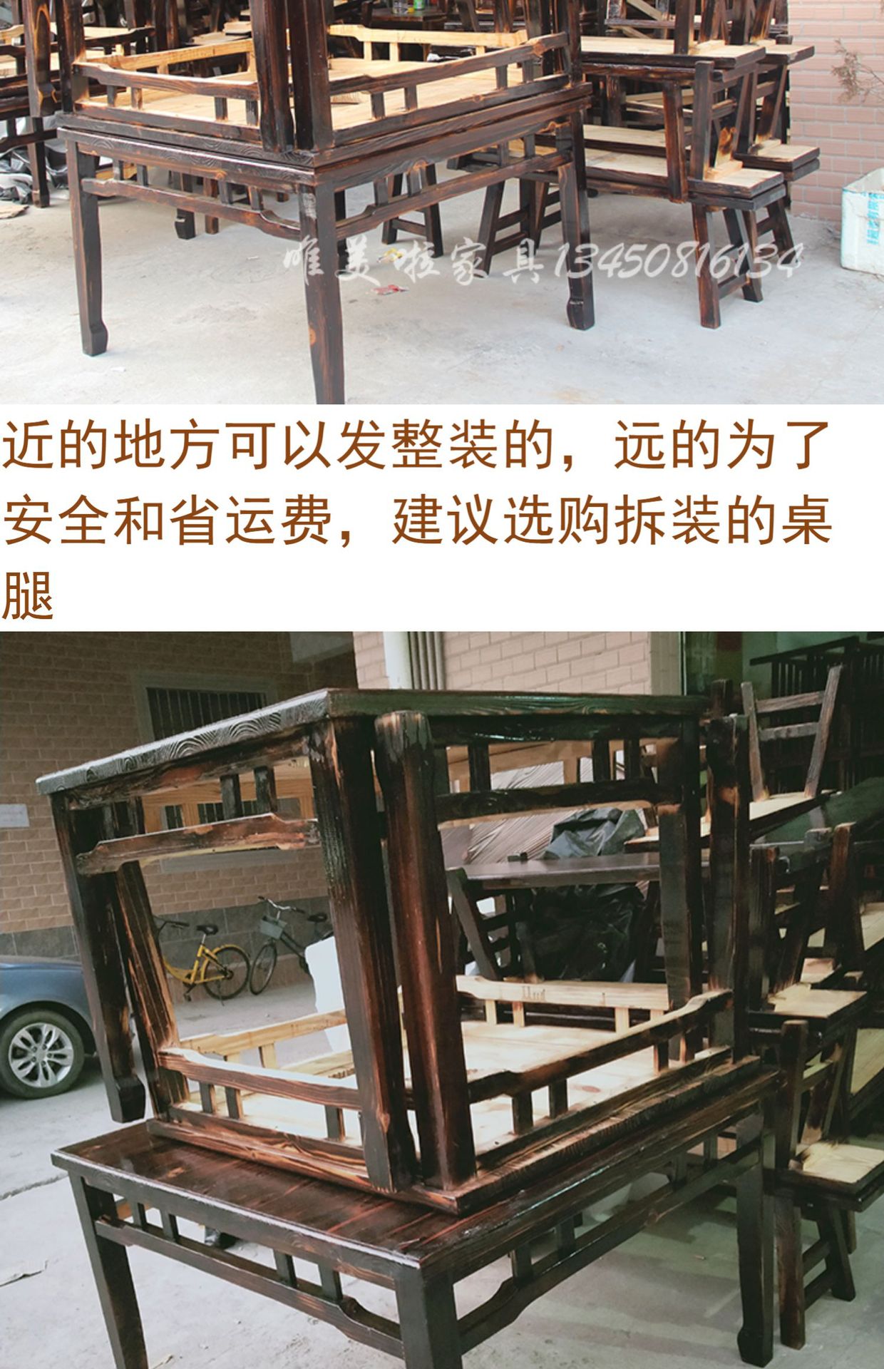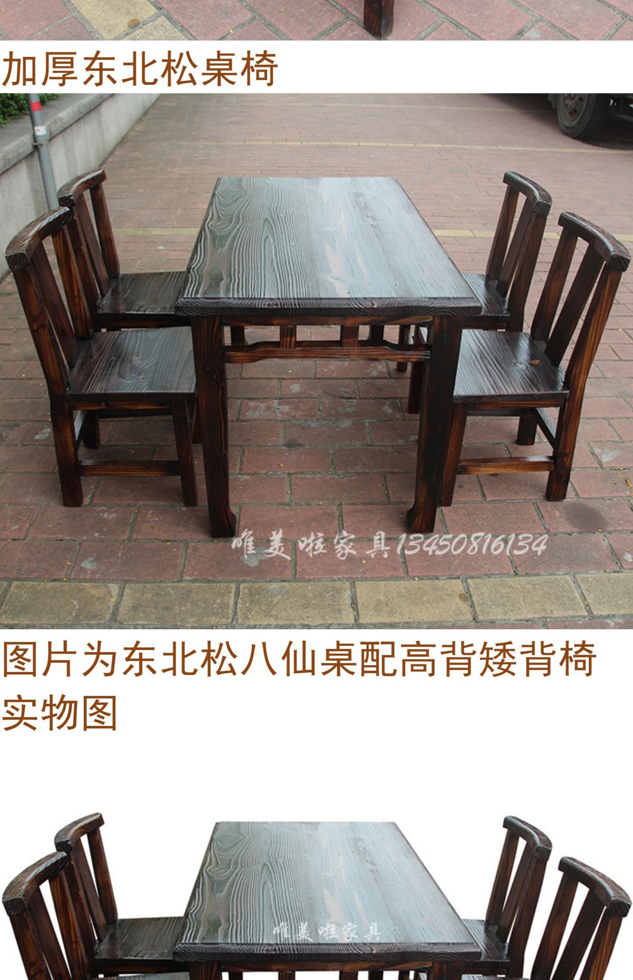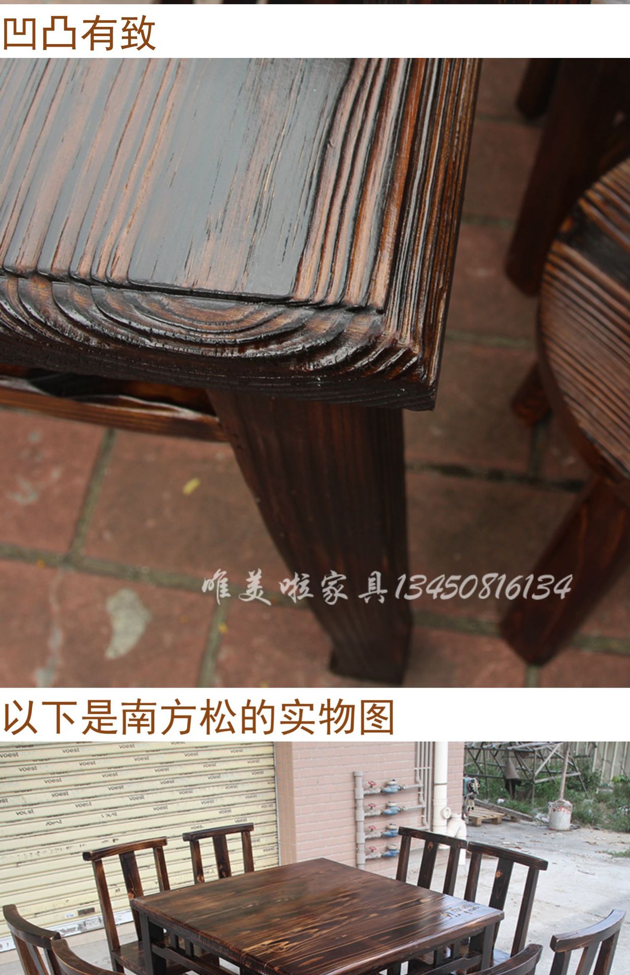 Китайский стол и стулья из сосны, ретро углеродный стол