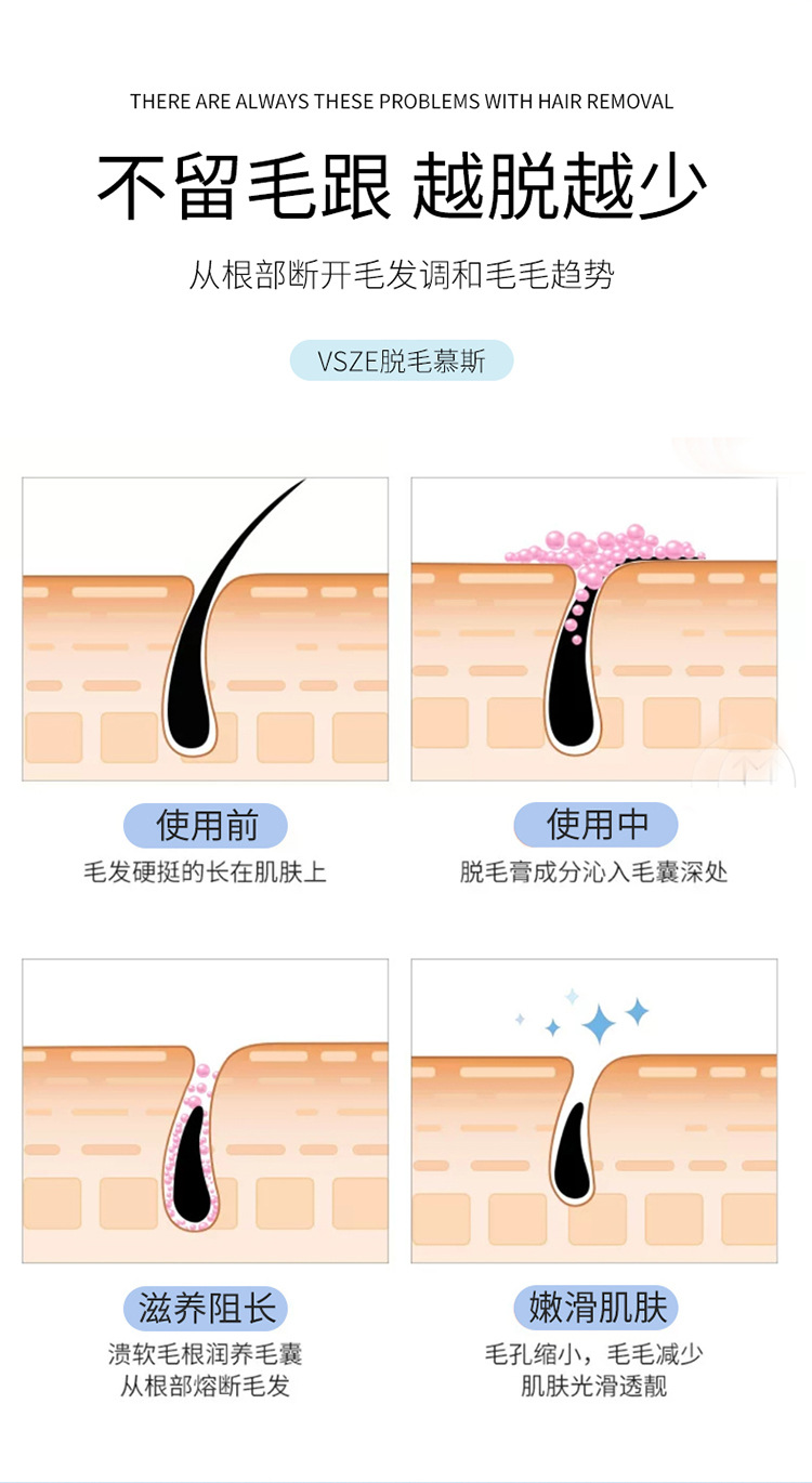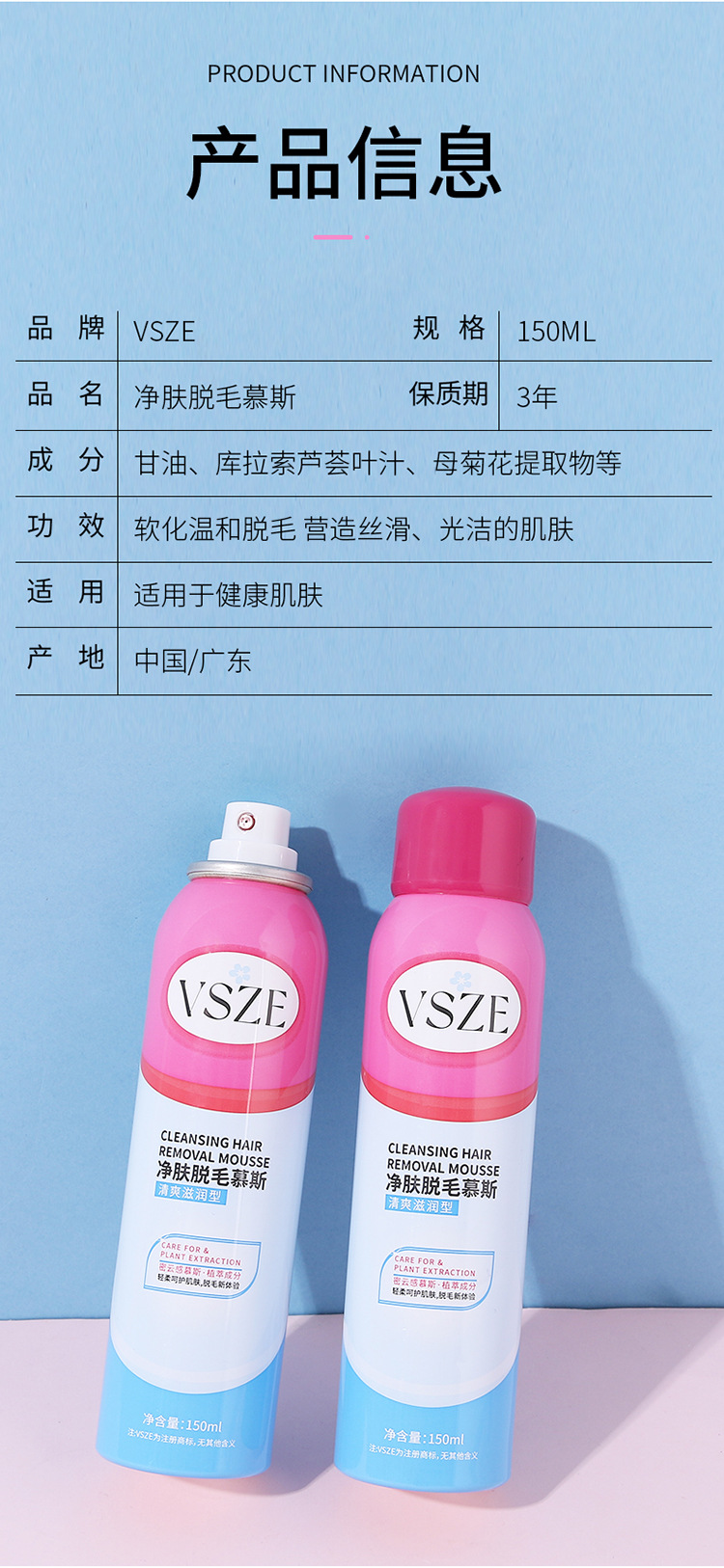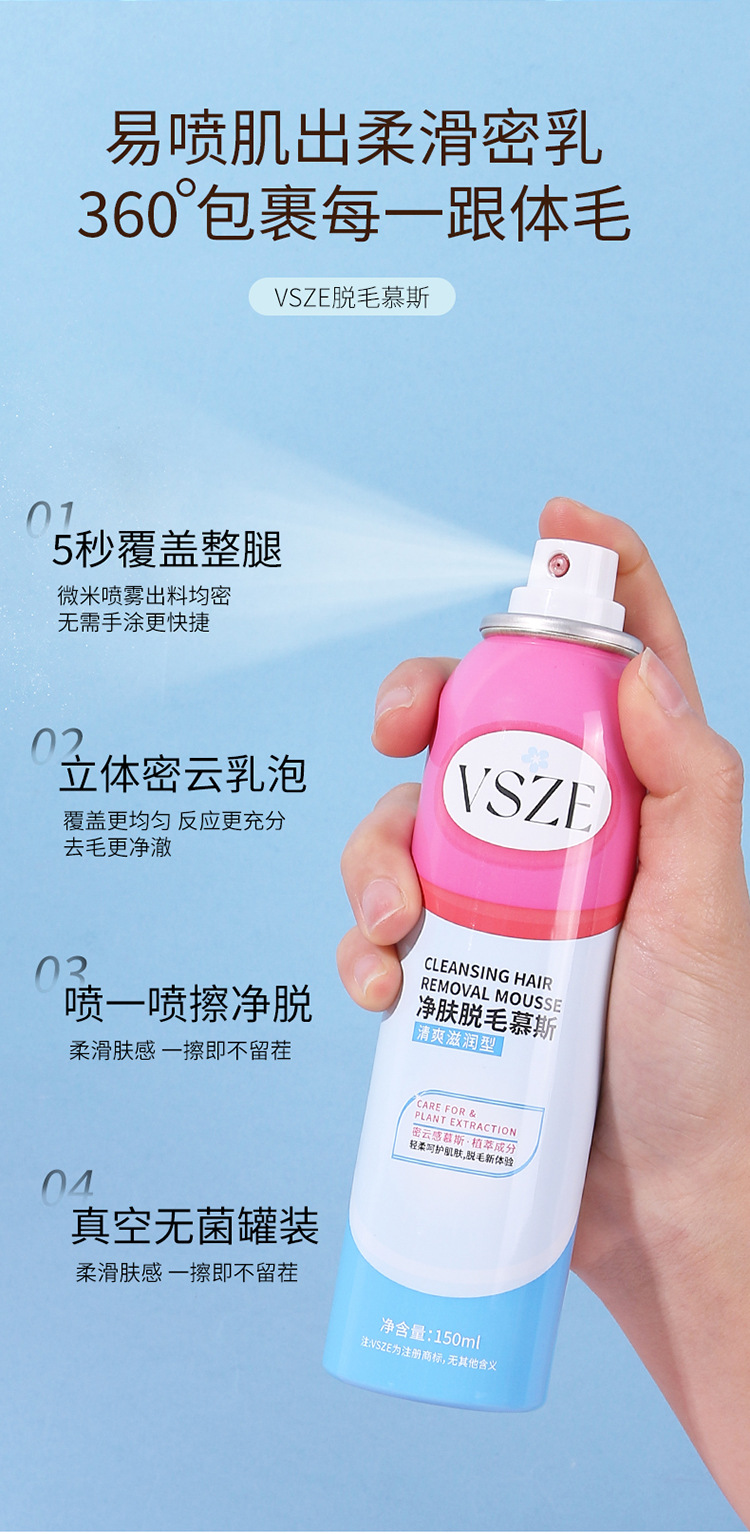 Очищающий мусс для удаления волос Vsze 150 мл, освежающий уход за кожей, безболезненное удаление волос, нежный и не оставляет жжения
