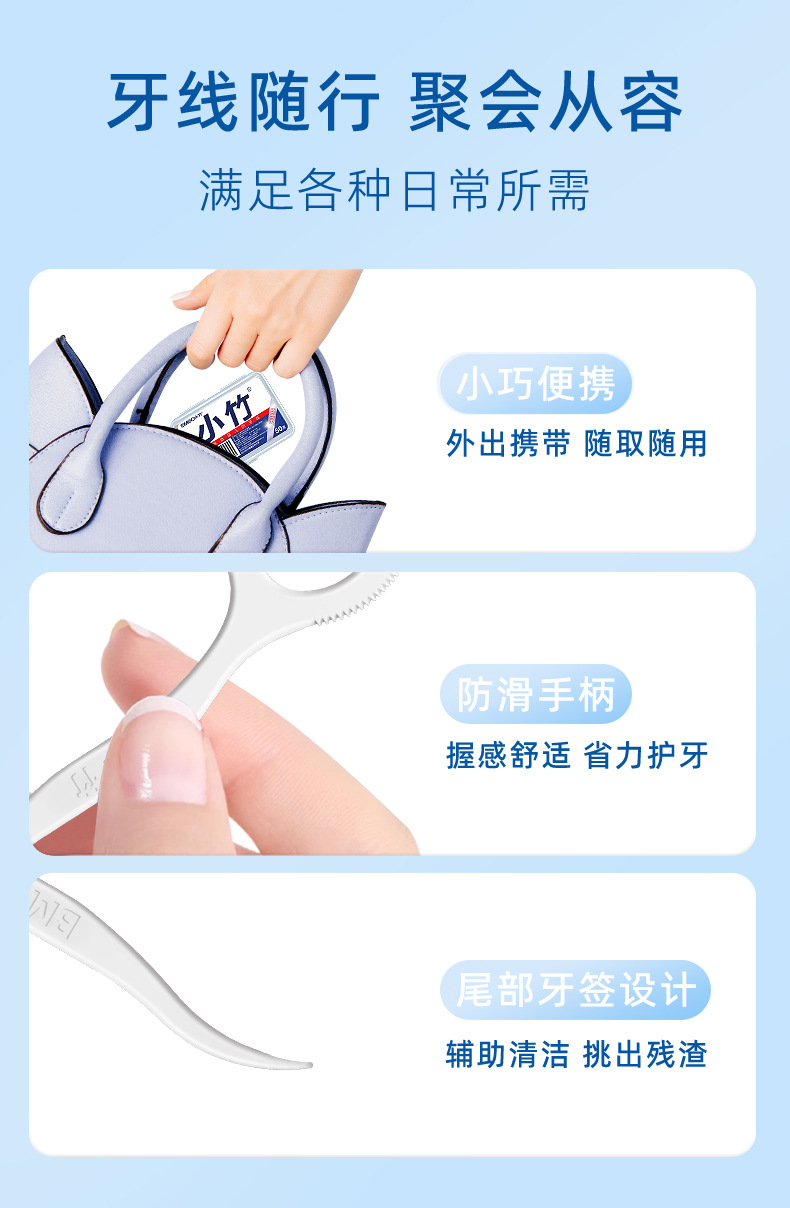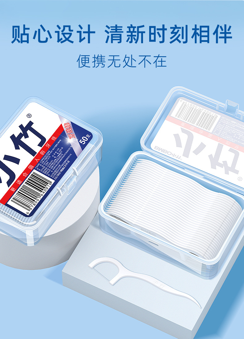 Зубная нить Xiaozhu, одноразовая, индивидуально упакованная, 50 штук, портативная семейная коробка, готовая к доставке от фабрики