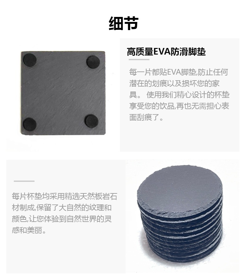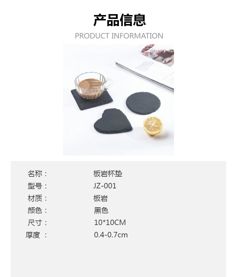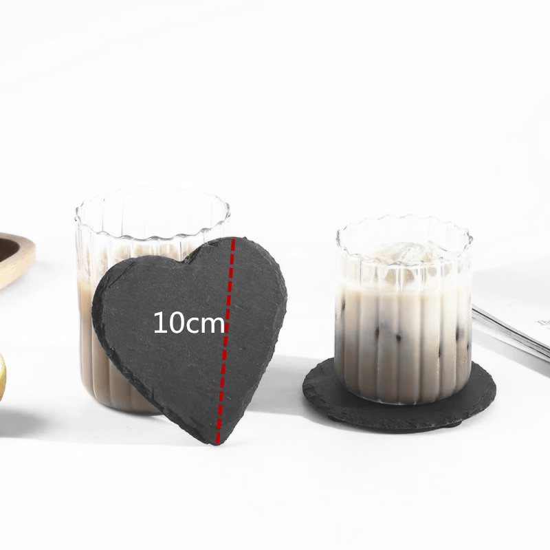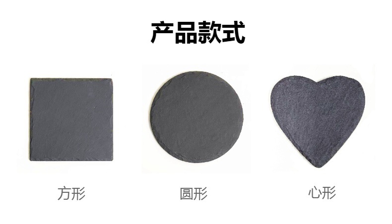 Оптовая продажа черных сланцевых подставок, круглых, квадратных, шестиугольных, в форме сердца, для вина и кофе