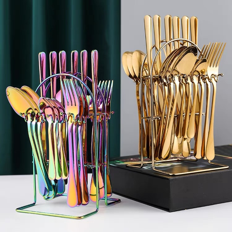 Набор столовых приборов из нержавеющей стали 24 предмета, подарок в коробке, сочетание ножа, вилки и ложки, золотая подставка для столовых приборов