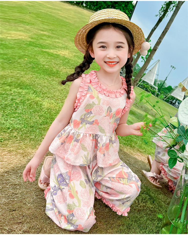 Легкий летний комплект для девочек 2025, жилет и широкие брюки, модная одежда для малышей