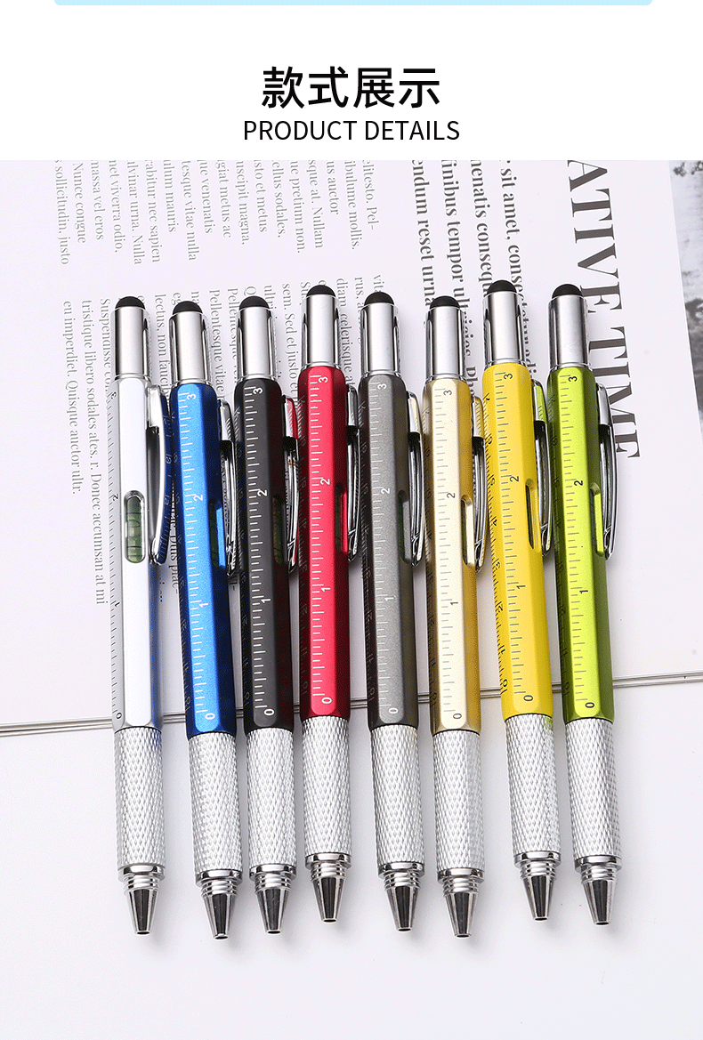 Креативная отвертка пластиковая ручка шести в одном уровень масштаб touch screen рекламная ручка