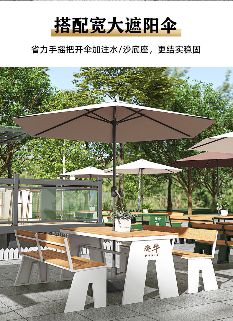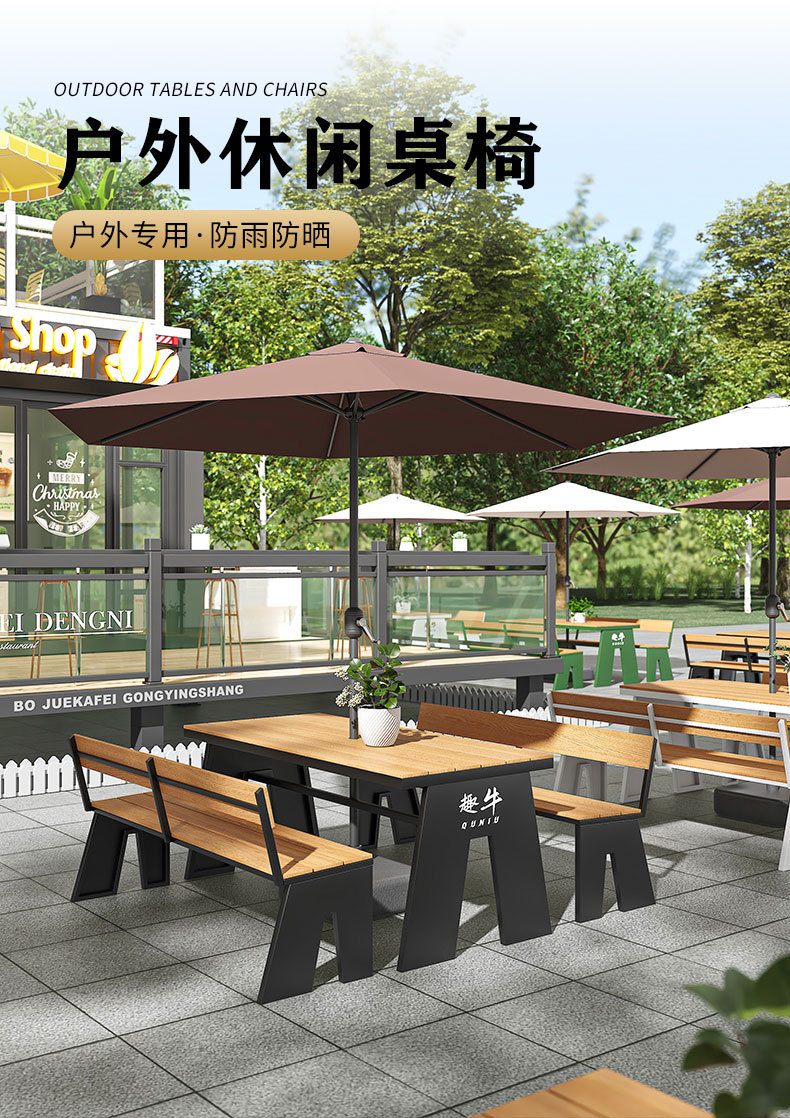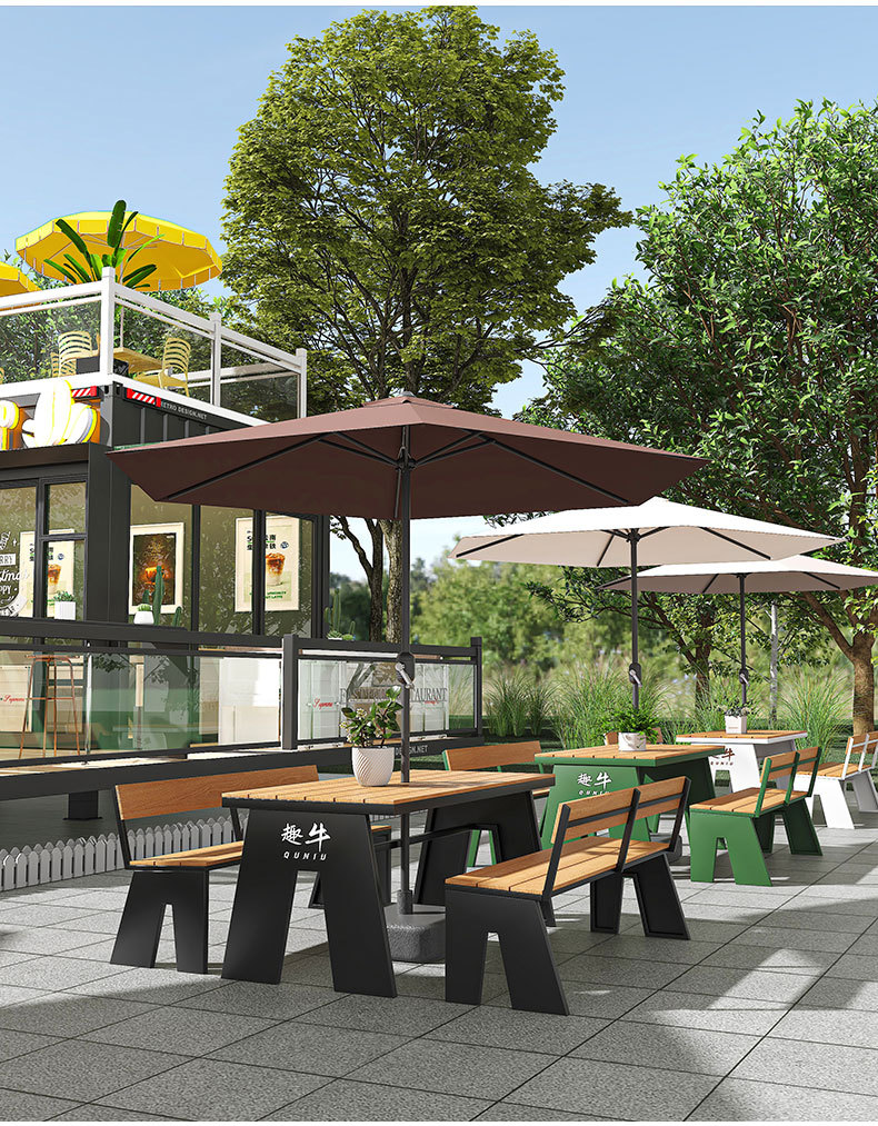 Набор столов и стульев для отдыха на улице с зонтом в парке