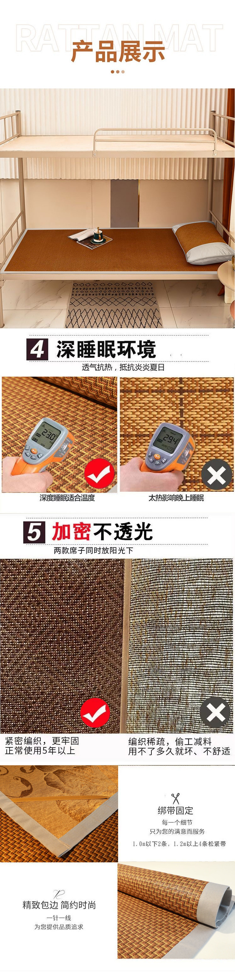 Летний мат студентческого общежития, двусторонний ротанговый мат, складной, для верхней и нижней койки, односпальный, из ледяного шелка, соломенный мат, оптовая продажа