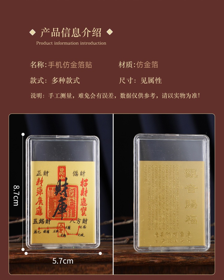 ![]() | Putuo mountain treasury [blessing from guanyin on the back] -5×6.3cm | Imitation gold foil sticker | ¥0.4 / ≈ 5 ₽ | 99688 | 5760444940233 | |