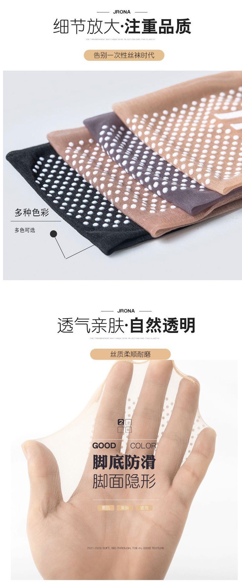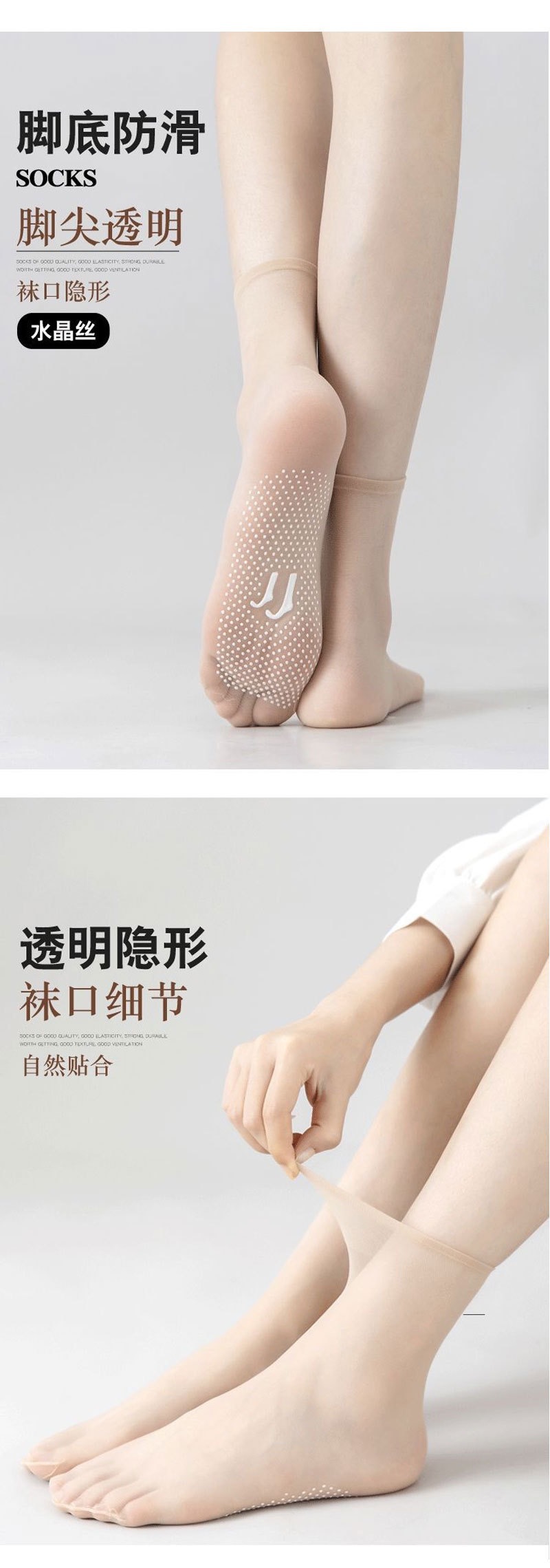![]() | Ultra-transparent crystal silk non-slip dispensing socks [skin color + smoky gray] | One size fits all | ¥0.49 / ≈ 6 ₽ | 999676 | 5934323859207 | |