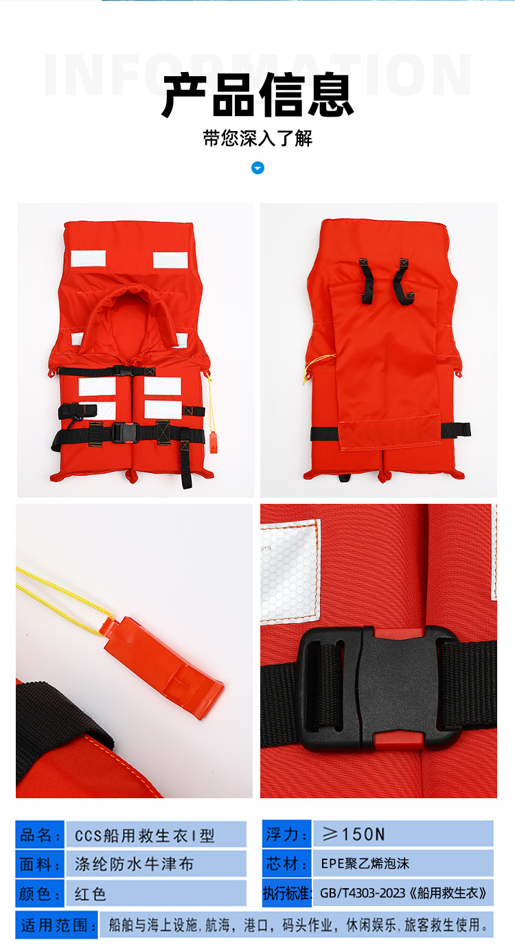 Спасательные жилеты морские с сертификатом CCS для внутренних рек большой плавучести 150N для спасения на корабле
