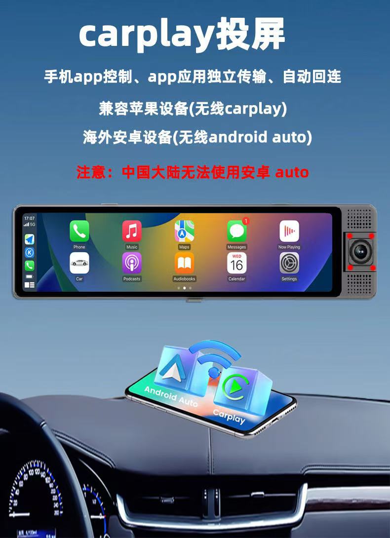 Трехлинзовый 4G Android 13 система, 12 дюймов, 4 64 ГБ большой экран, Carplay видеорегистратор, мобильный телефон