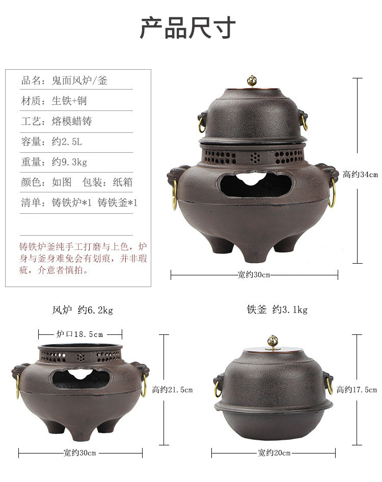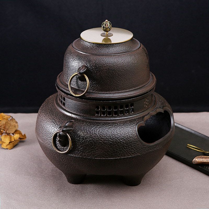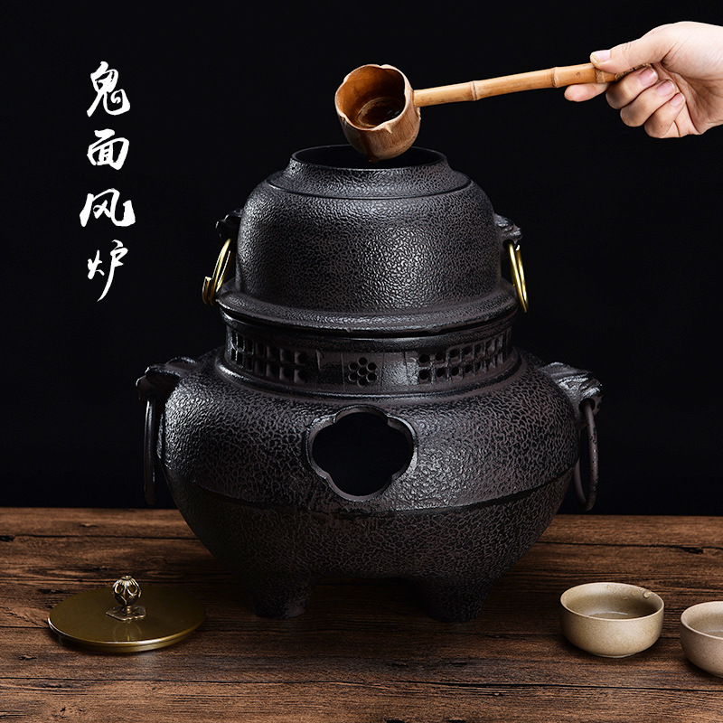 Уличная чайная печь на углях в японском стиле, устройство для заваривания чая, чугунная печь с лицом призрака для двора