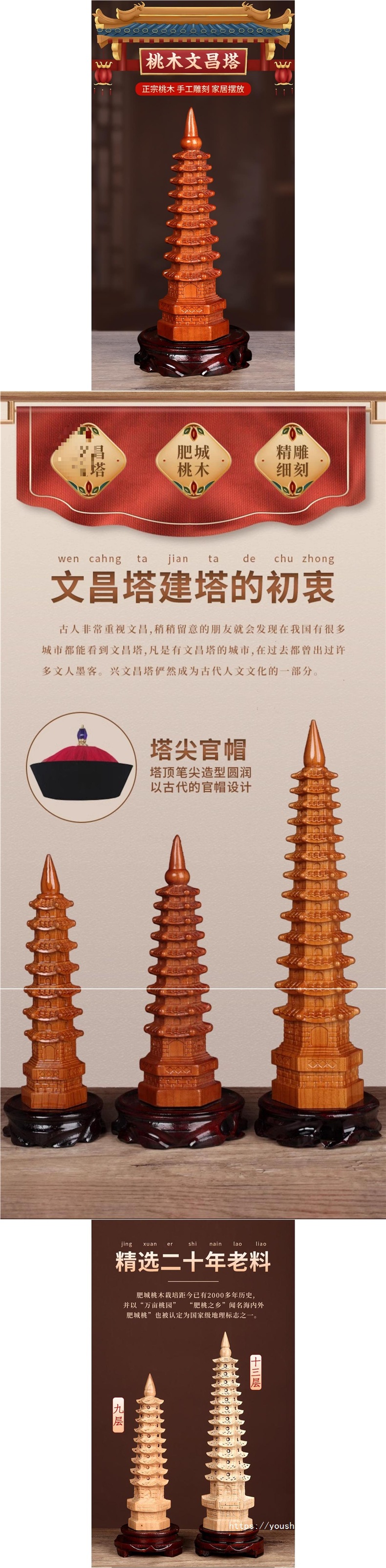 Персиковое дерево Вэньчан Тауэр, украшения, чисто деревянный картридж для ручки, 13- и 9-этажные, стол для учебы