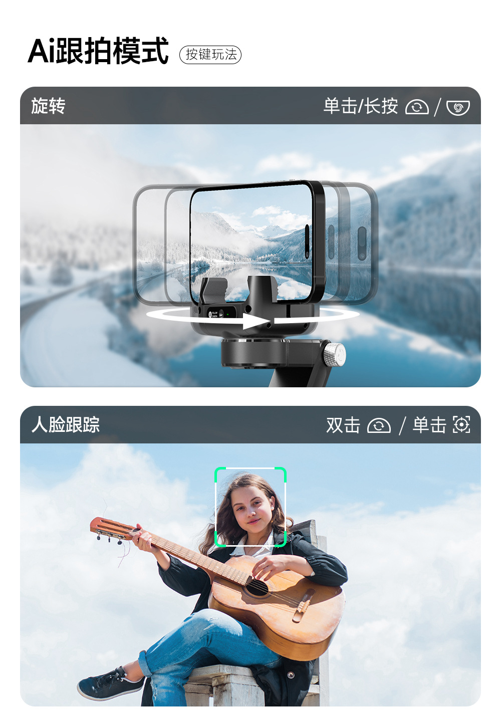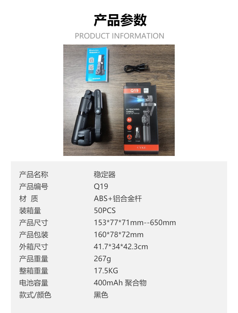 Одноосевой стабилизатор Q19 с AI слежением за лицом для живых трансляций