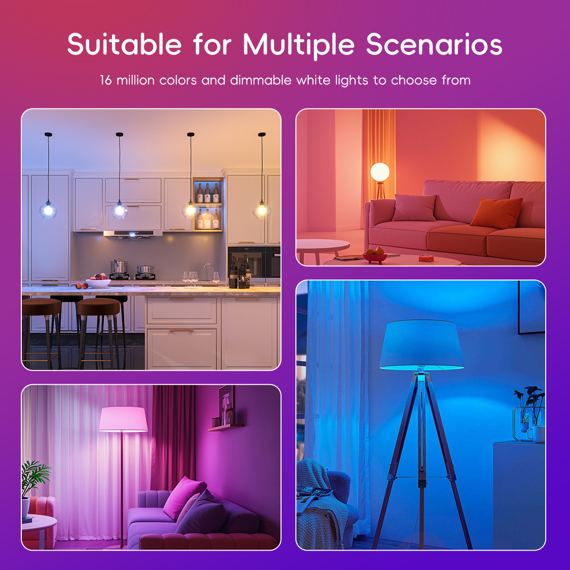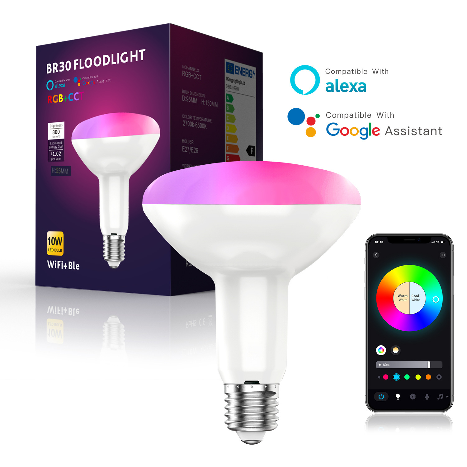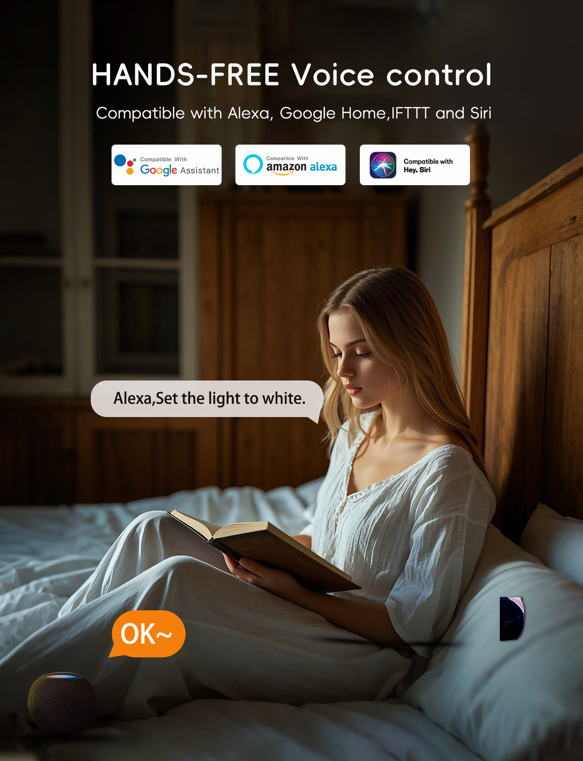 Умная лампочка WiFi, цветной ночной свет, управление голосом