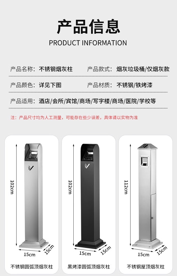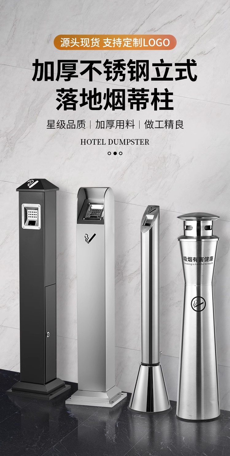 Уличный вертикальный пепельник из нержавеющей стали, колонна для курения в отеле, мусорный бак для сигарет