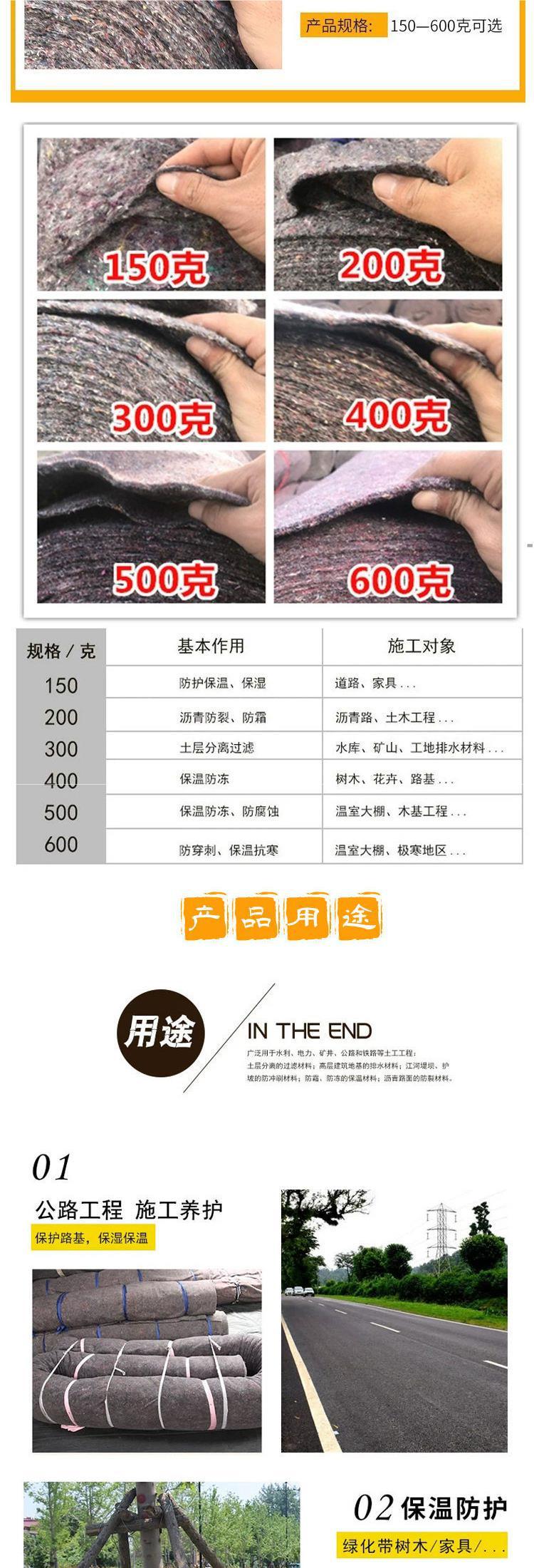 Утолщенный геотекстиль Фетровая нетканая инженерная Теплица Утепляющее одеяло Обслуживание дороги Одеяло для обслуживания крыши Увлажнение и теплоизоляция