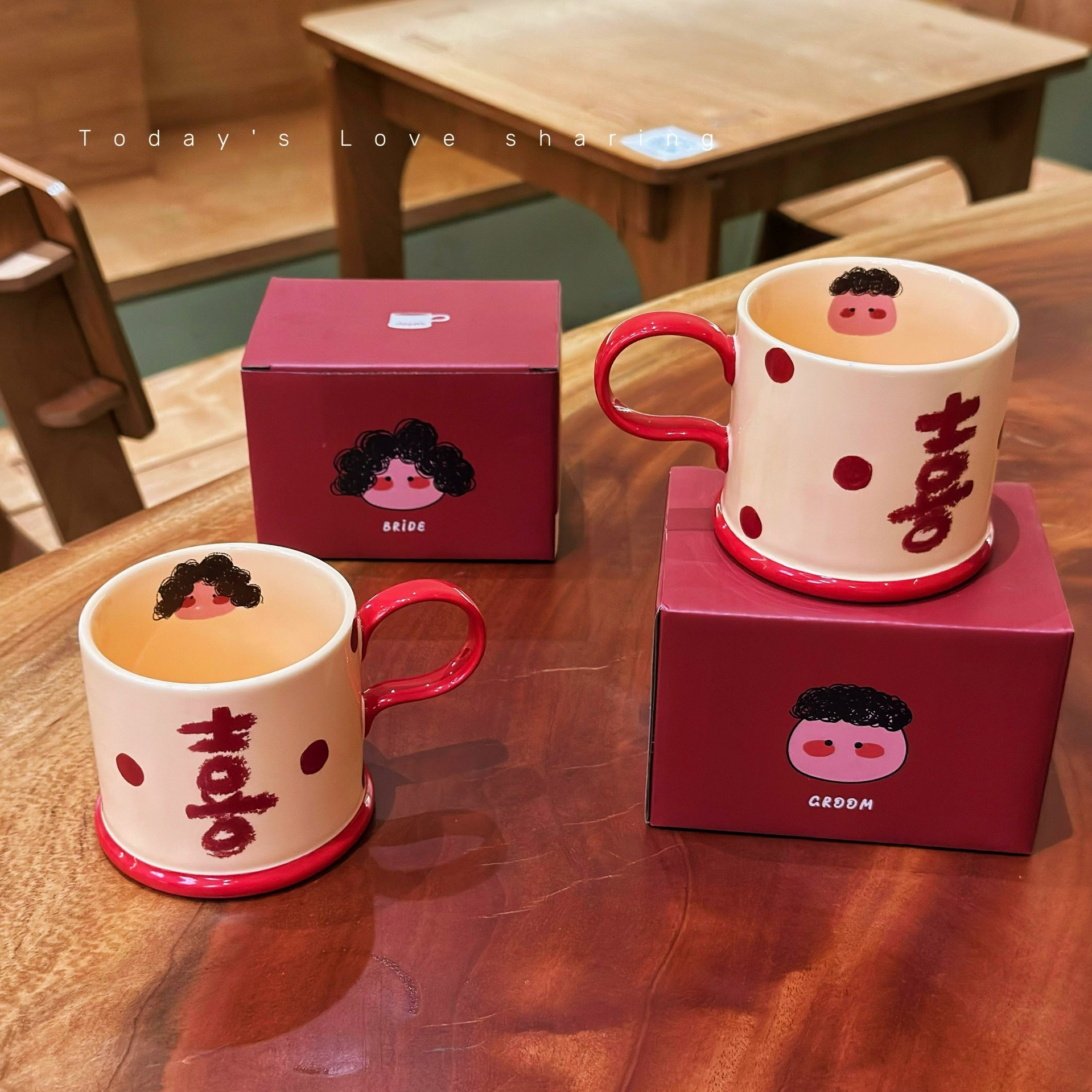 Свадебный подарок для невесты, керамическая кружка, высокая цветовая ценность, подарок для мужчин и женщин, подарочная коробка с парными кружками