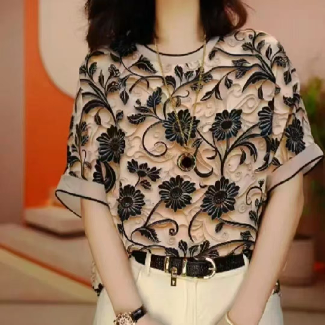 Весна и лето, новый европейский женский топ, базовая рубашка, высококачественная мода, стильный 5D трехмерный принт