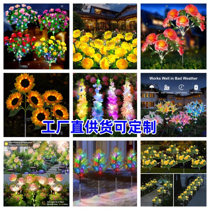 Новая солнечная лампа рододендрон, украшение для двора, цветочная клумба, уличные свадебные реквизиты, имитация атмосферы, светодиоды
