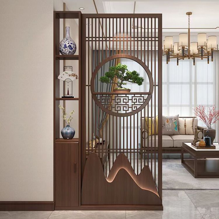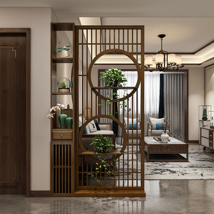 Новый китайский стиль, экран из массива дерева, решетка, входной шкаф, гостиная, входная дверь, перегородка с затенением