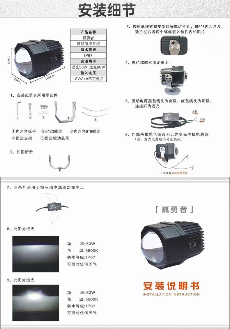 Светодиодный точечный светильник Lone Warrior, фара для грузовика, лазерная пушка, 12V 24V, дальний и ближний свет, водонепроницаемая, пылезащитная лазерная пушка