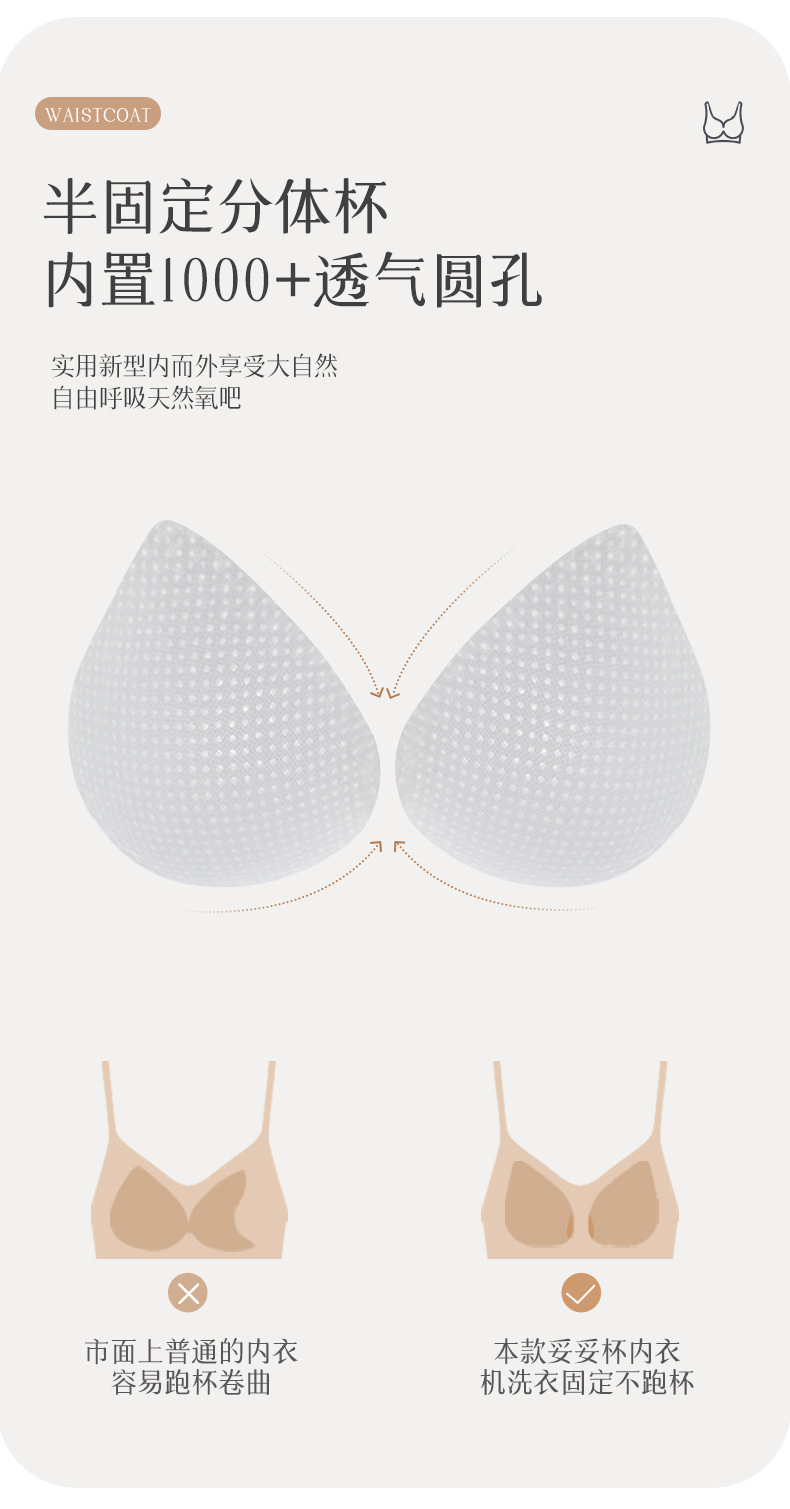 ⑧:背心式版型设计,24小时不分场合 体验“真”无感自由、舒适。