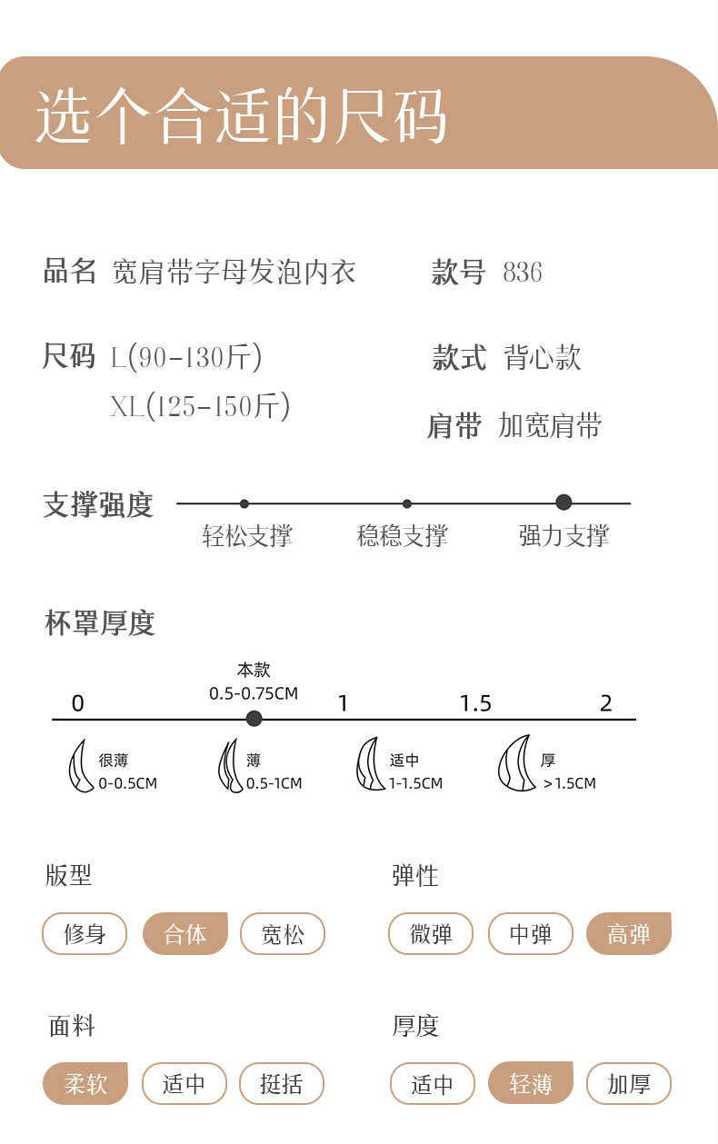 品名: 宽肩带字母发泡无痕隐形双尺码