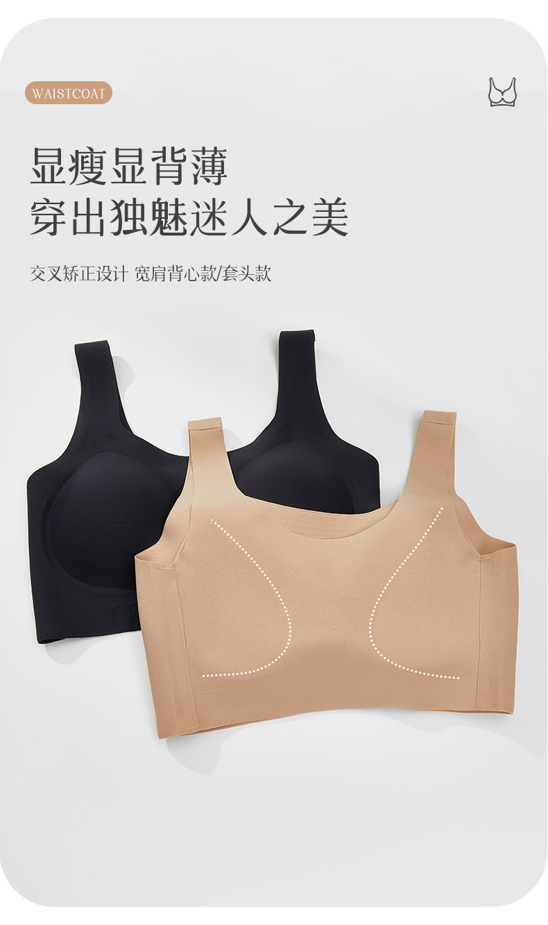 6宽肩带背心款式,后背交叉设计矫阵后背,无痕美背套头款,
