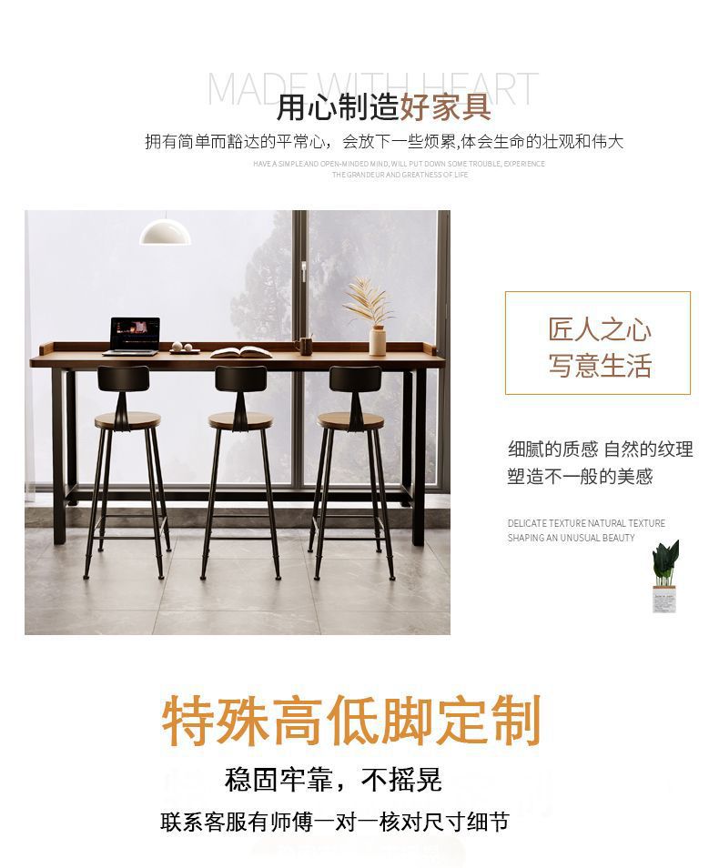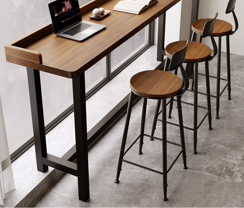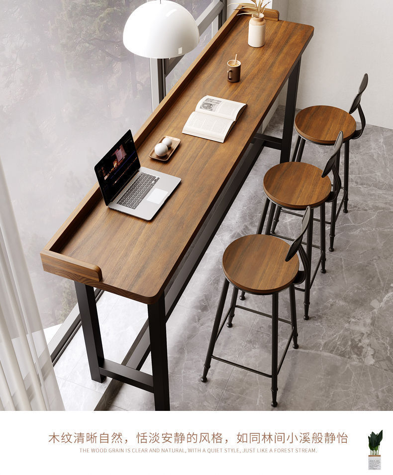 Барный стол для балкона, простой стол из массива дерева, длинный стол с высокими и низкими ножками