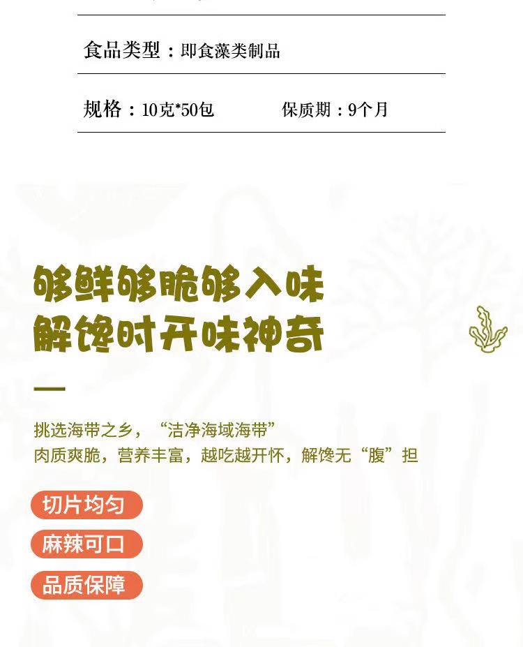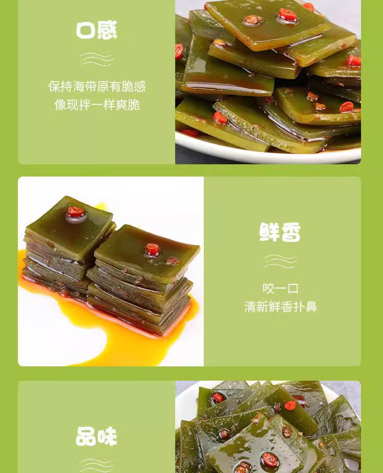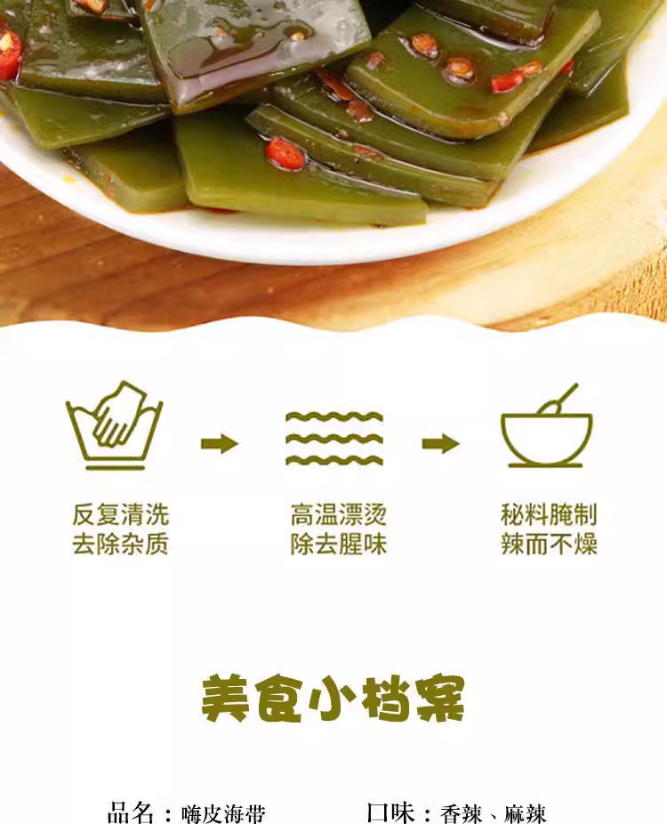 Сырьё и ингредиенты Kelp, drinking water, pepper, edible vegetable oil, edible salt, white sugar,