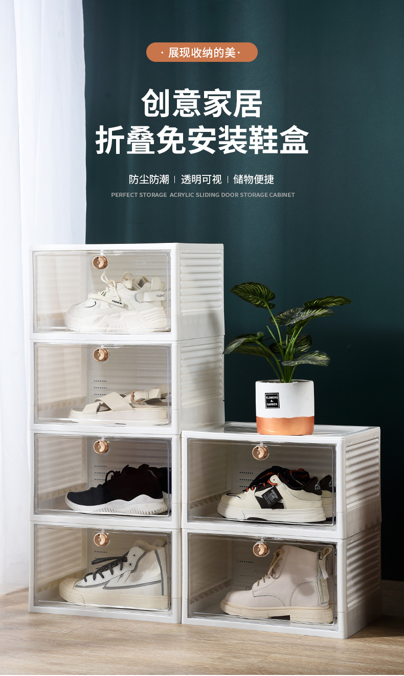 Кастомизированная складная прозрачная коробка для обуви, портативный шкаф для обуви без установки, пылезащитный, свободная комбинация